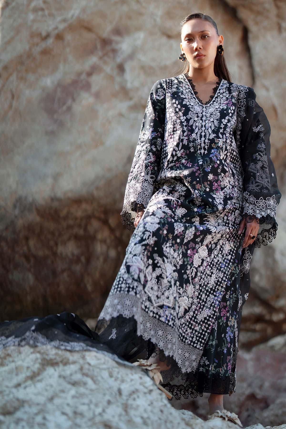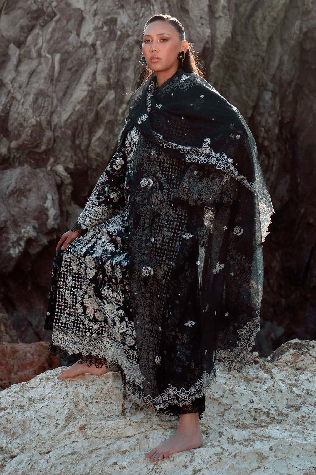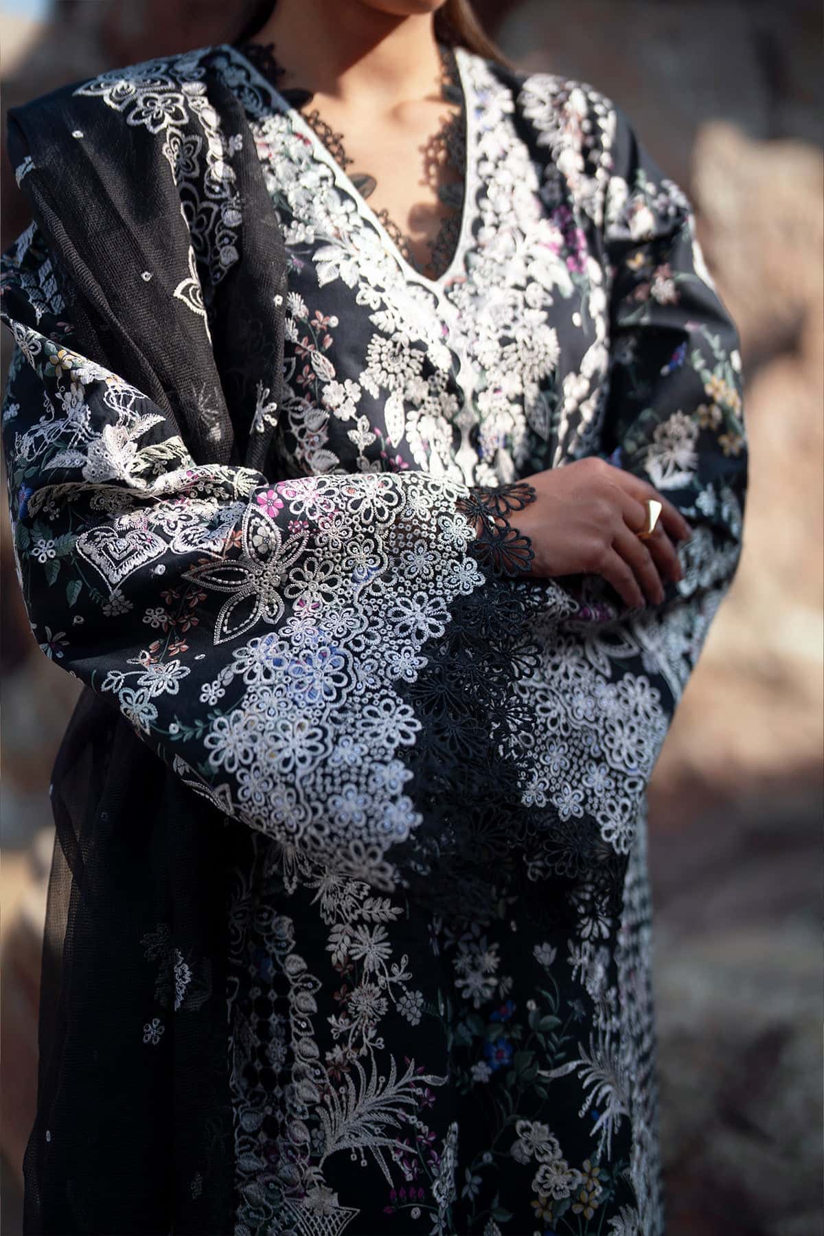ORGANZA EMBROIDERED FRONT+BACK+SLEEVES BORDER (2.97 M)