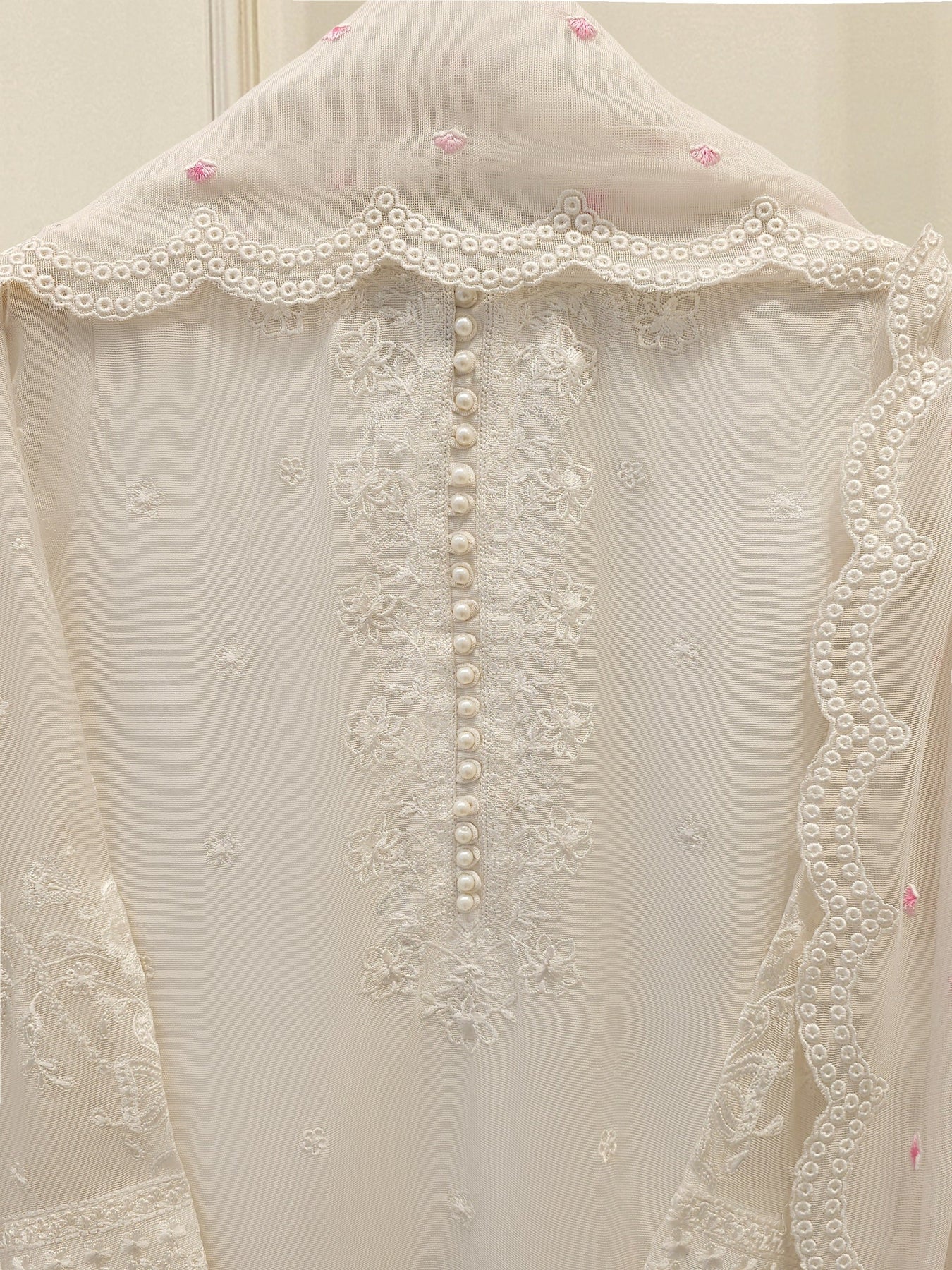 Introducing our elegant embroidered cotton net shirt with pants a perfect choice for those who appreciate intricate detailing and graceful style. Crafted from high-quality cotton net fabric, this shirt offers a lightweight and luxurious feel, allowing you to feel comfortable and chic throughout the day. The set comes with a matching pant which enhances the overall look and adds a touch of finesse to your outfit.