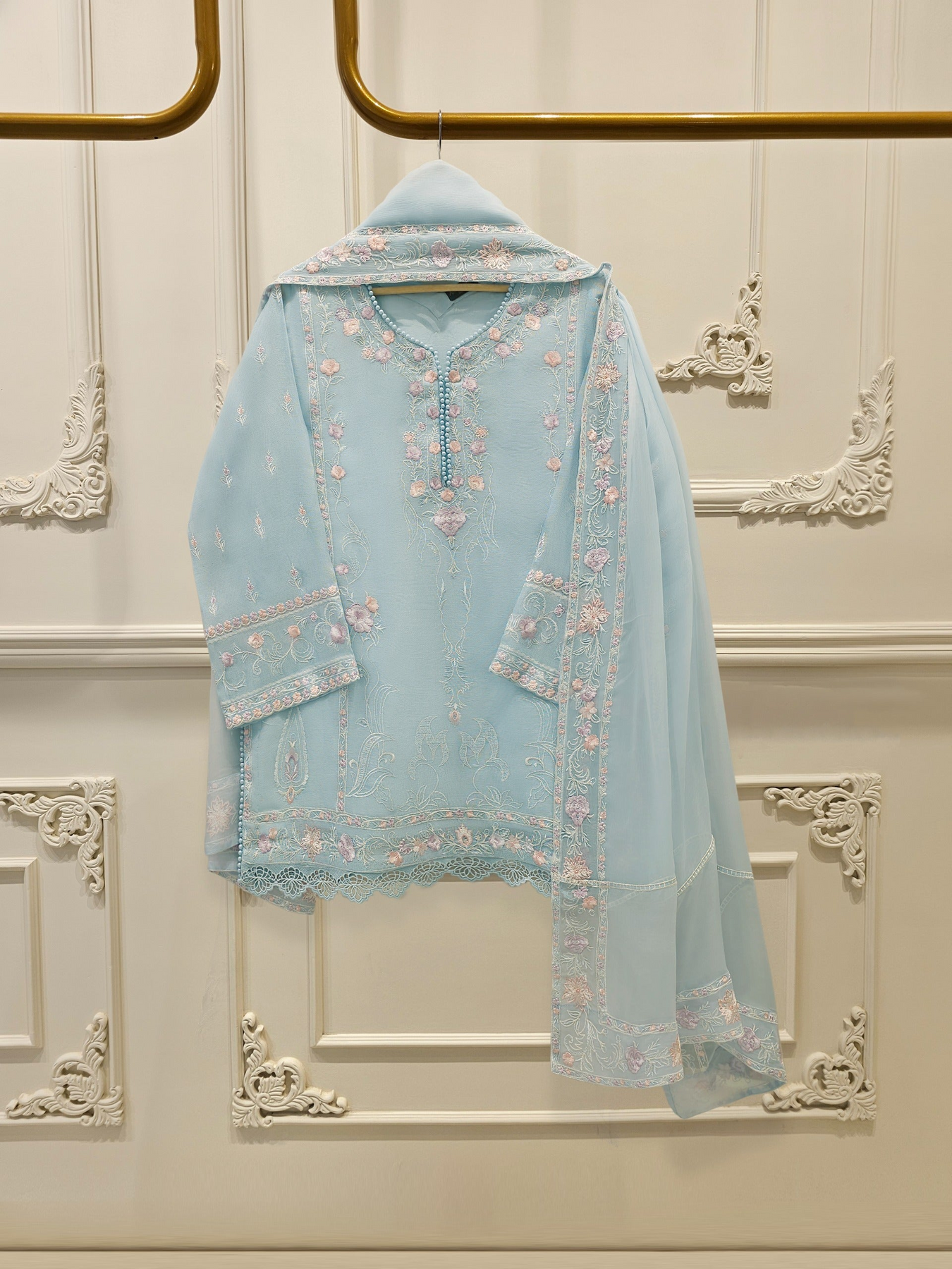 3 Piece - Pure Embroidered Cotton Net Suit