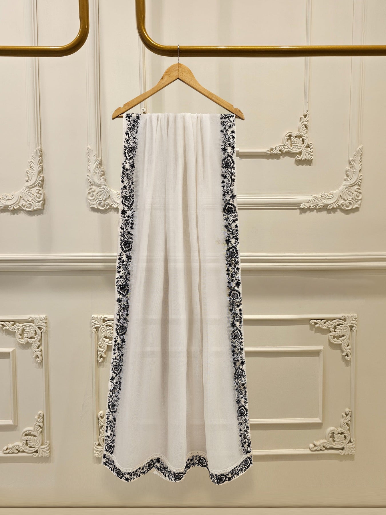 Introducing our elegant embroidered cotton net shirt with pants and dupatta a perfect choice for those who appreciate intricate detailing and graceful style. Crafted from high-quality cotton net fabric, this shirt offers a lightweight and luxurious feel, allowing you to feel comfortable and chic throughout the day. The set comes with a matching dupatta and pant which enhances the overall look and adds a touch of finesse to your outfit.