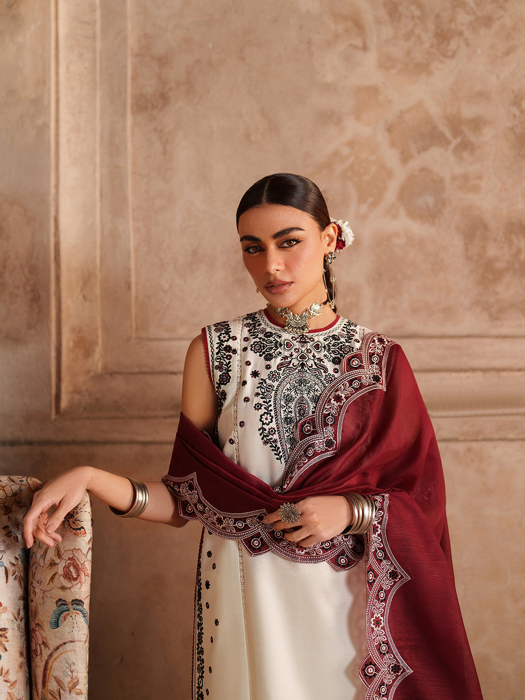 Dyed Self Jacquard Lawn Embroidered Front & Back Left 2 Pieces