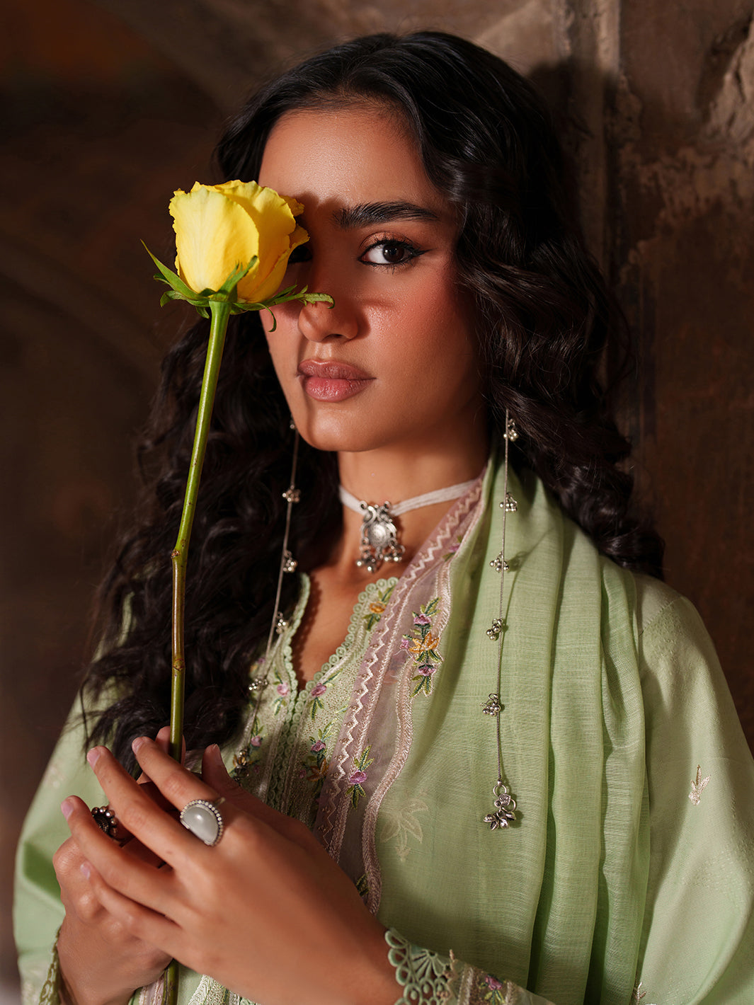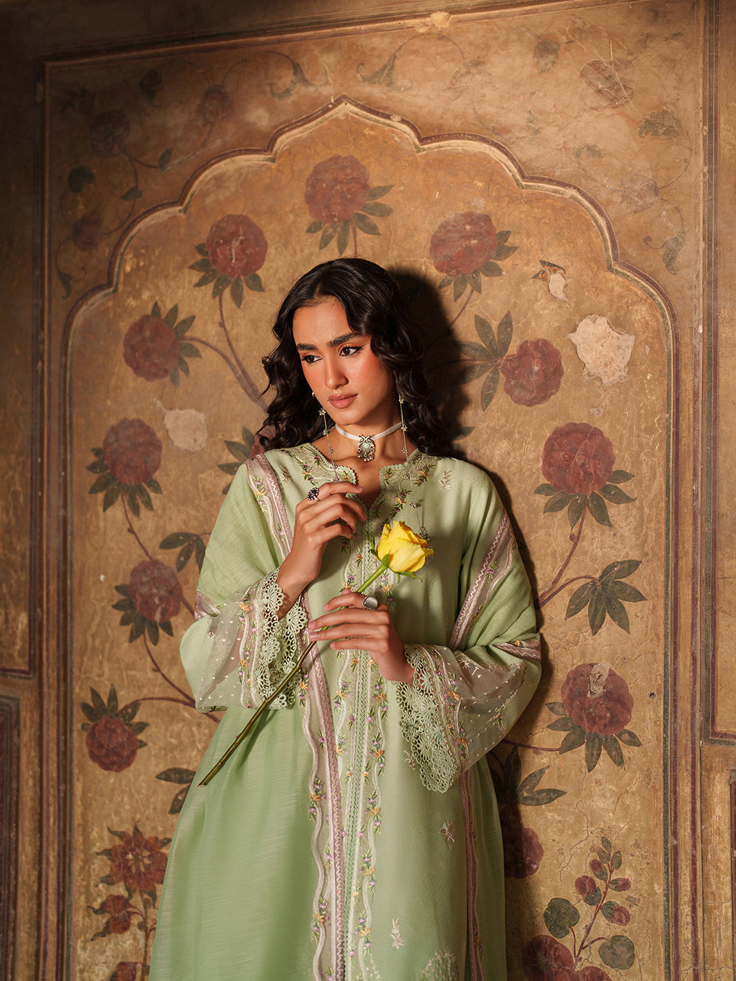 Dyed Self Jacquard Lawn Embroidered Front Left  1 Piece