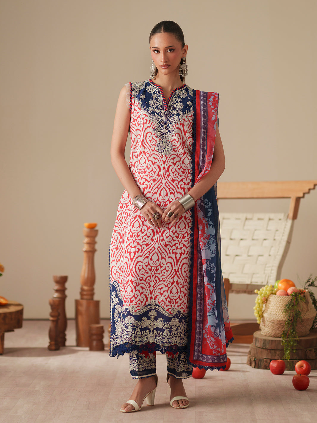 Embroidered Neck on Dyed Fabric 1 Piece