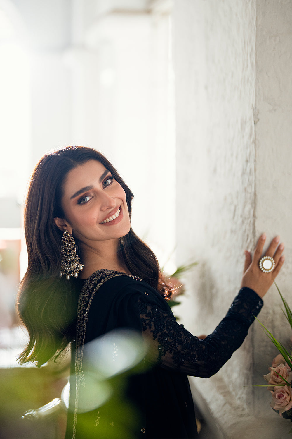 Sequins Embroidered Chiffon for Front & Back Kalis: 3.3 Yards