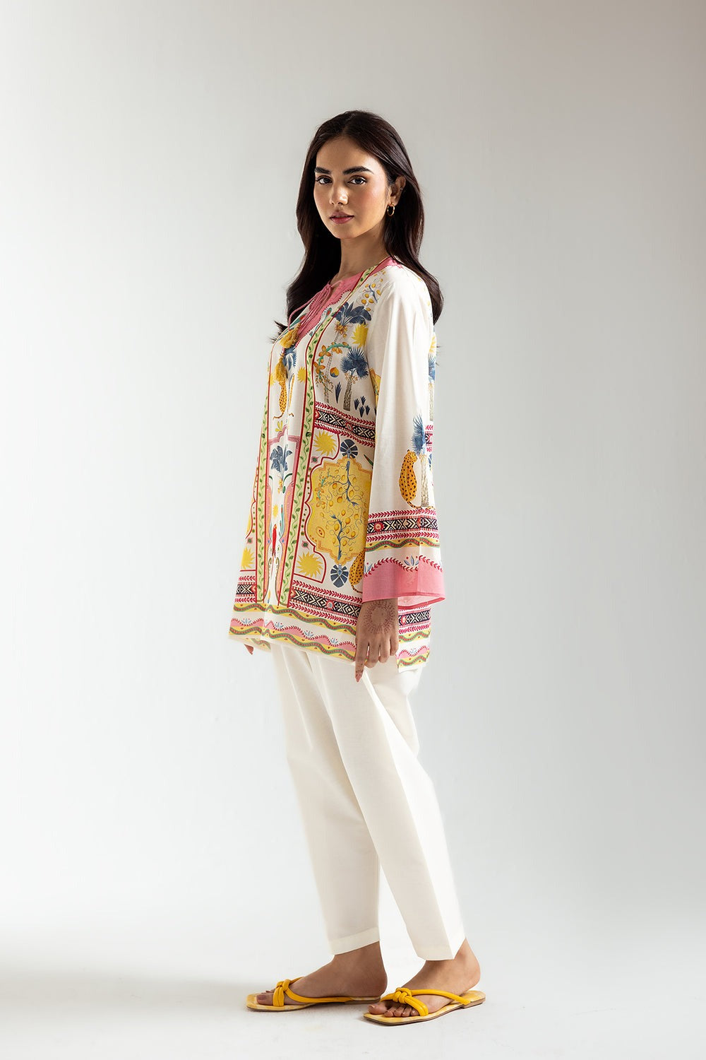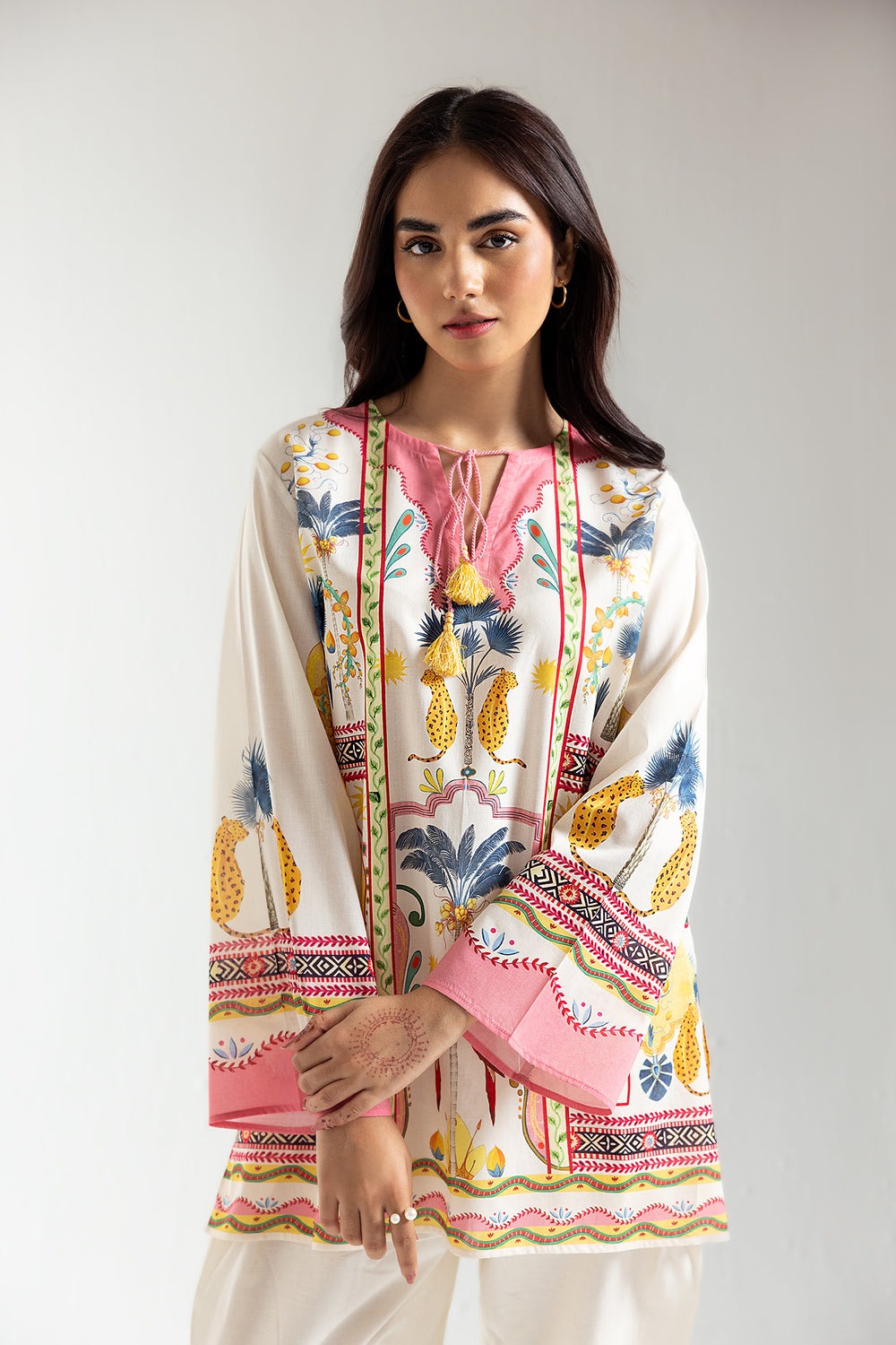 Exude elegance and grace with this classy kurti. The mesmerizing off white shade and contemporary design make it perfect for fun events. Its vibrant colors and chic composition will make you stand out. Be the picture of style and sophistication this season.