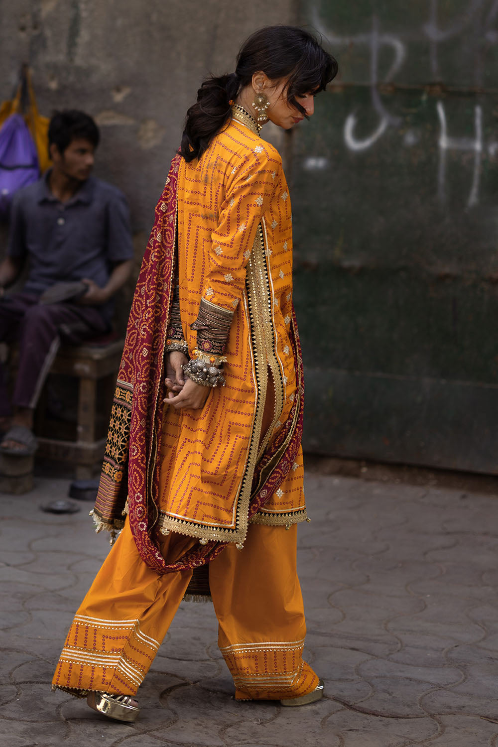 3 Piece Gold and Lacquer Printed Lawn