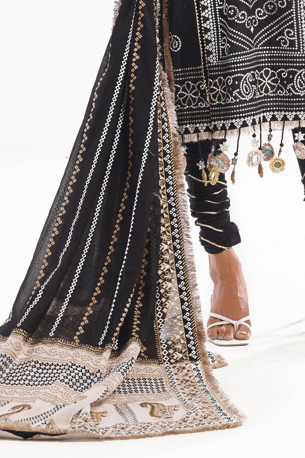 • Zari Embroidered Lawn Shirt Front, Side Panels & Sleeves with Zari Embroidered Lawn Borders for Front & Back. Dyed Lawn Back - 2.43 Meters
