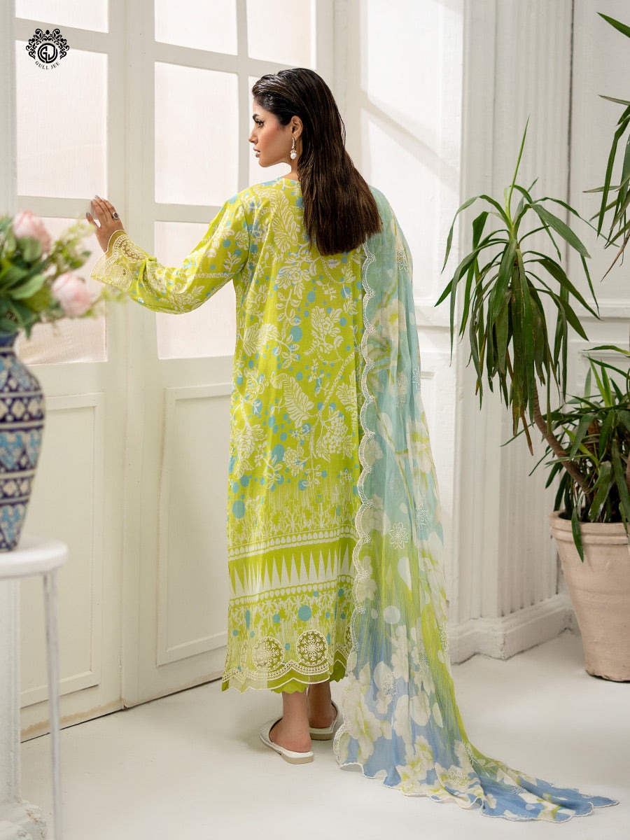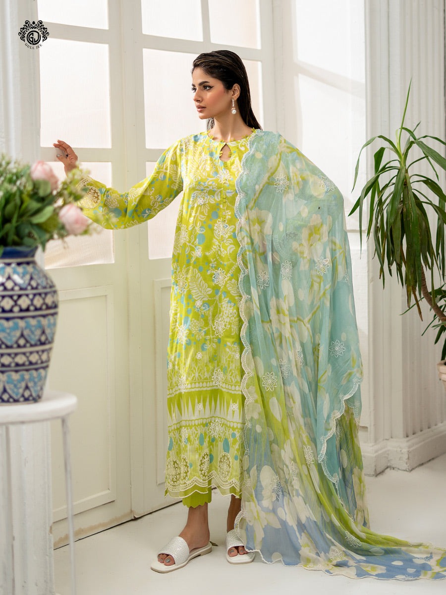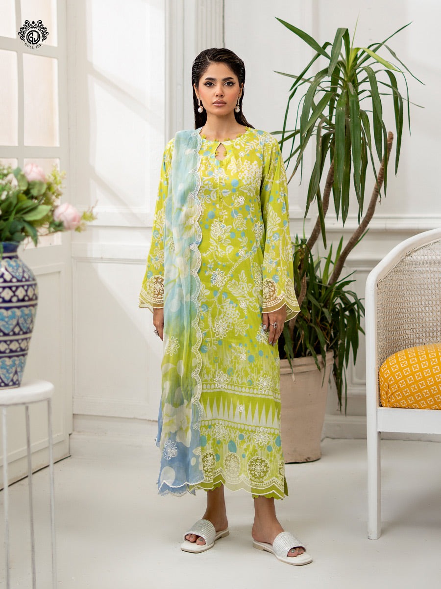 • Dupatta: Digital Printed Bamber Chiffon Embroidered Cut-Work