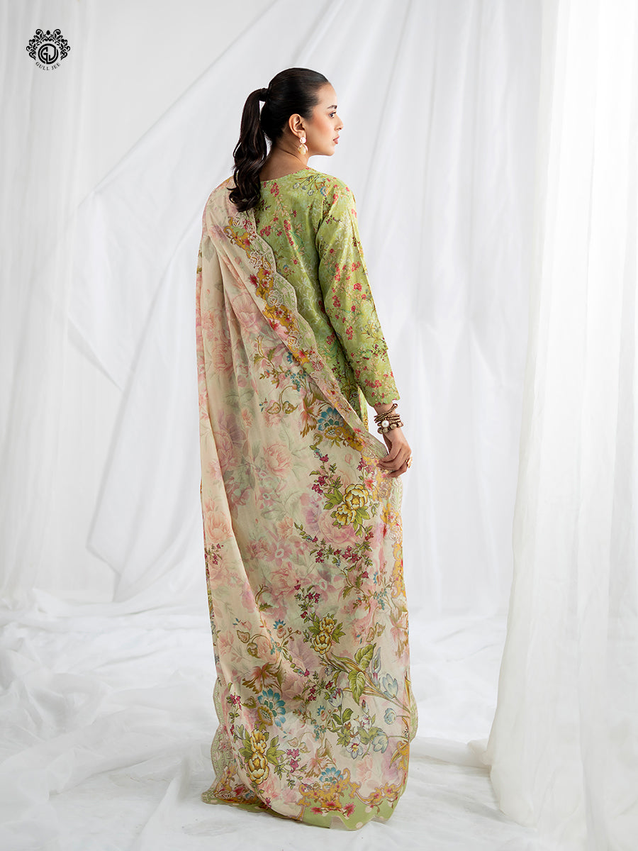 • Duppata: Digital Printed Pure Check Lawn Embroidered Cut-Work