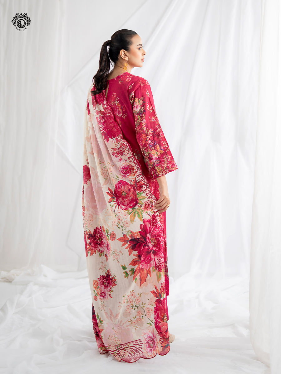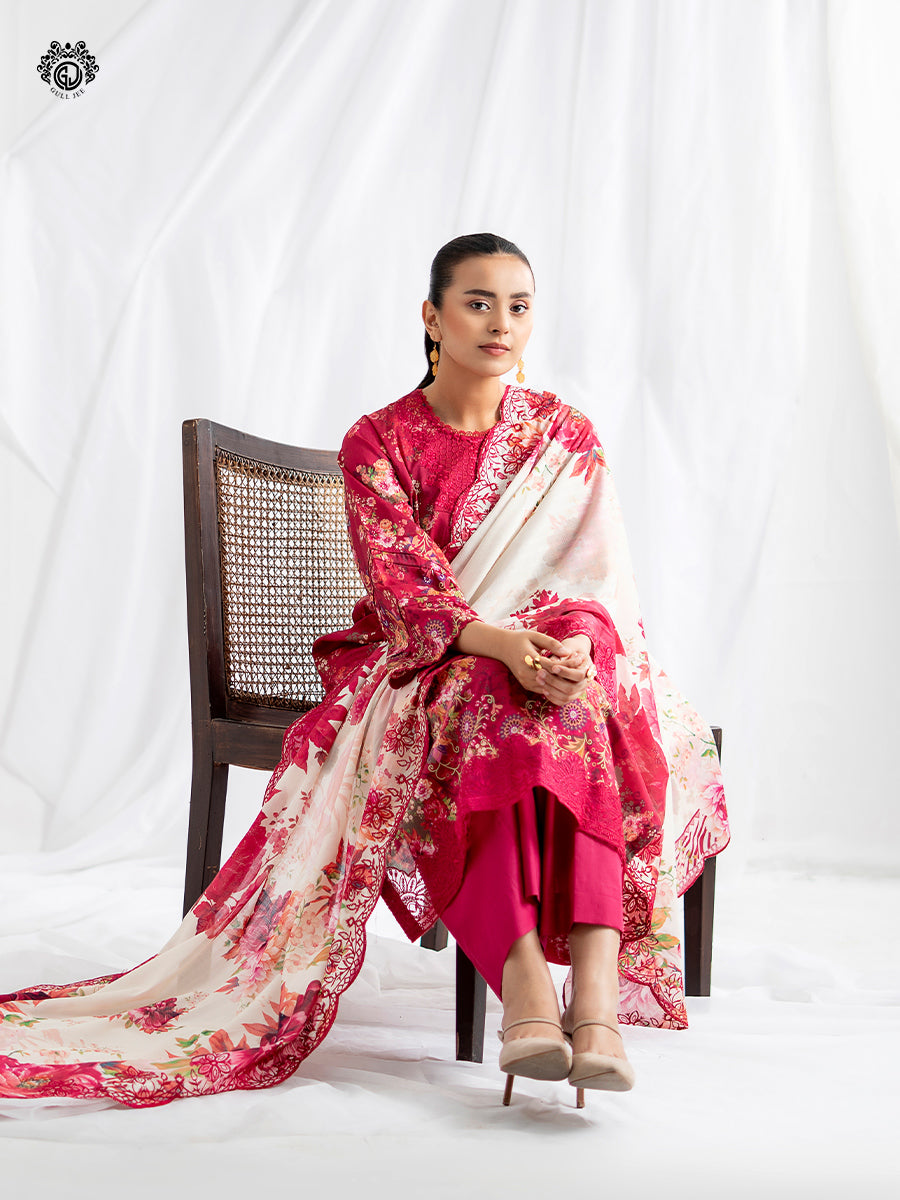 • Duppata: Digital Printed Pure Check Lawn Embroidered Cut-Work