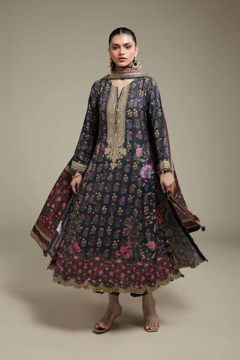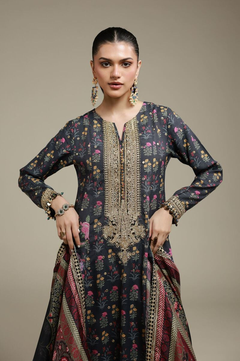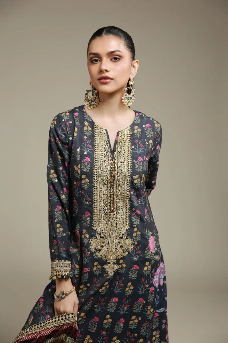 • Description: A 2-piece outfit featuring a printed embroidered kaftan dress with short sleeves, paired with printed flared pants.