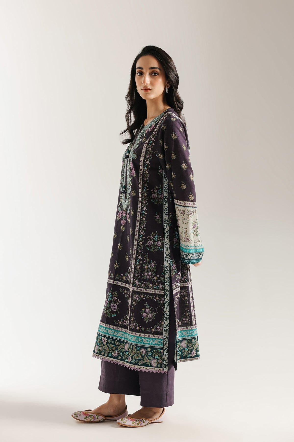 -Printed Khaddar Embroidered Shirt 3 mtr
