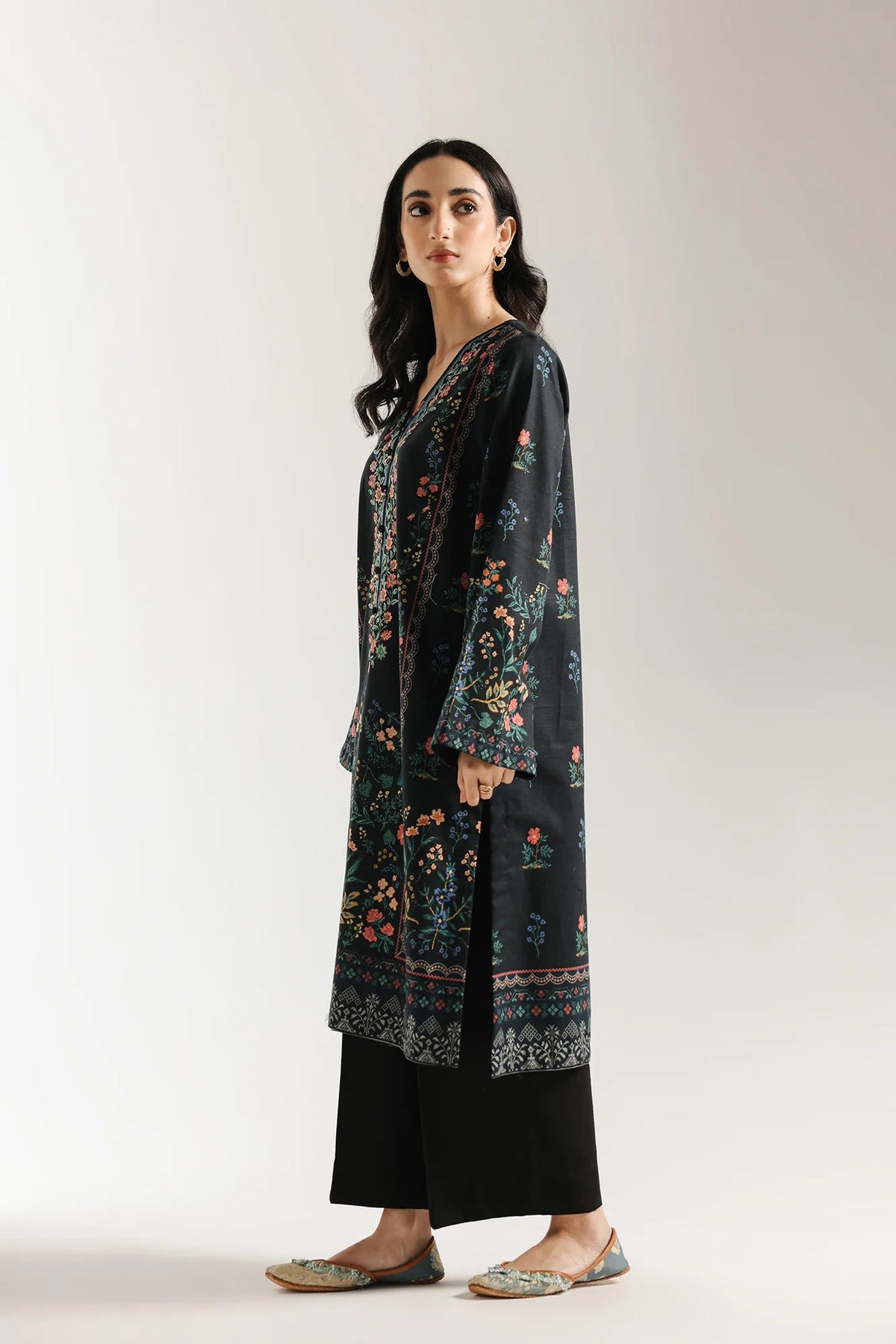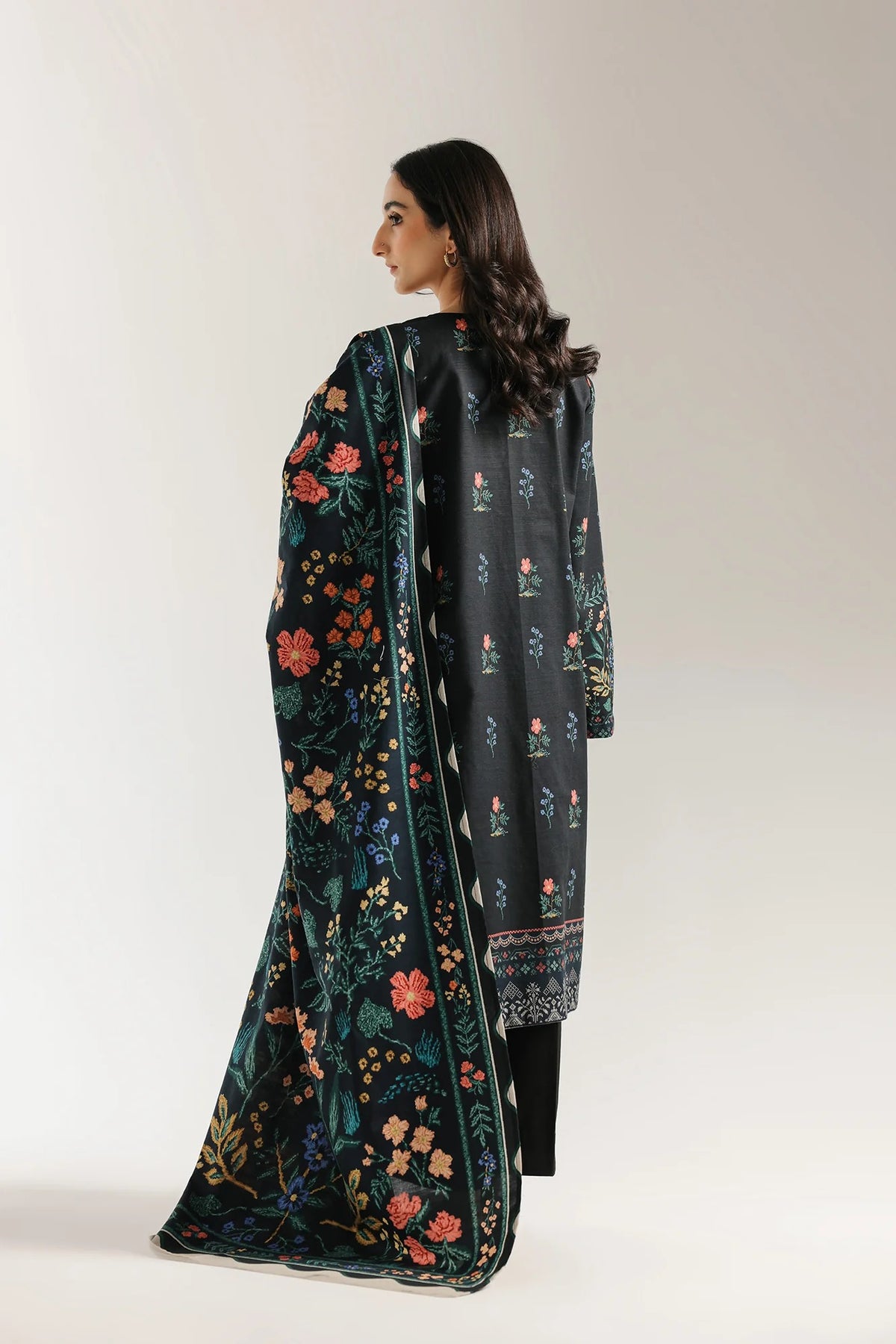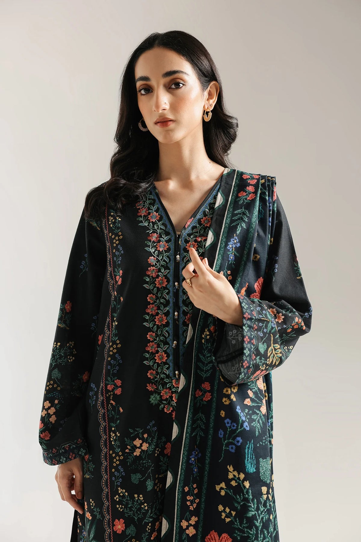 -Printed Khaddar Embroidered Shirt  3 mtr