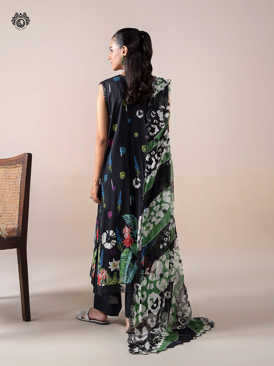 • Dupatta: Digital Printed Bamber Chiffon Sequin Embroidered Cut-work