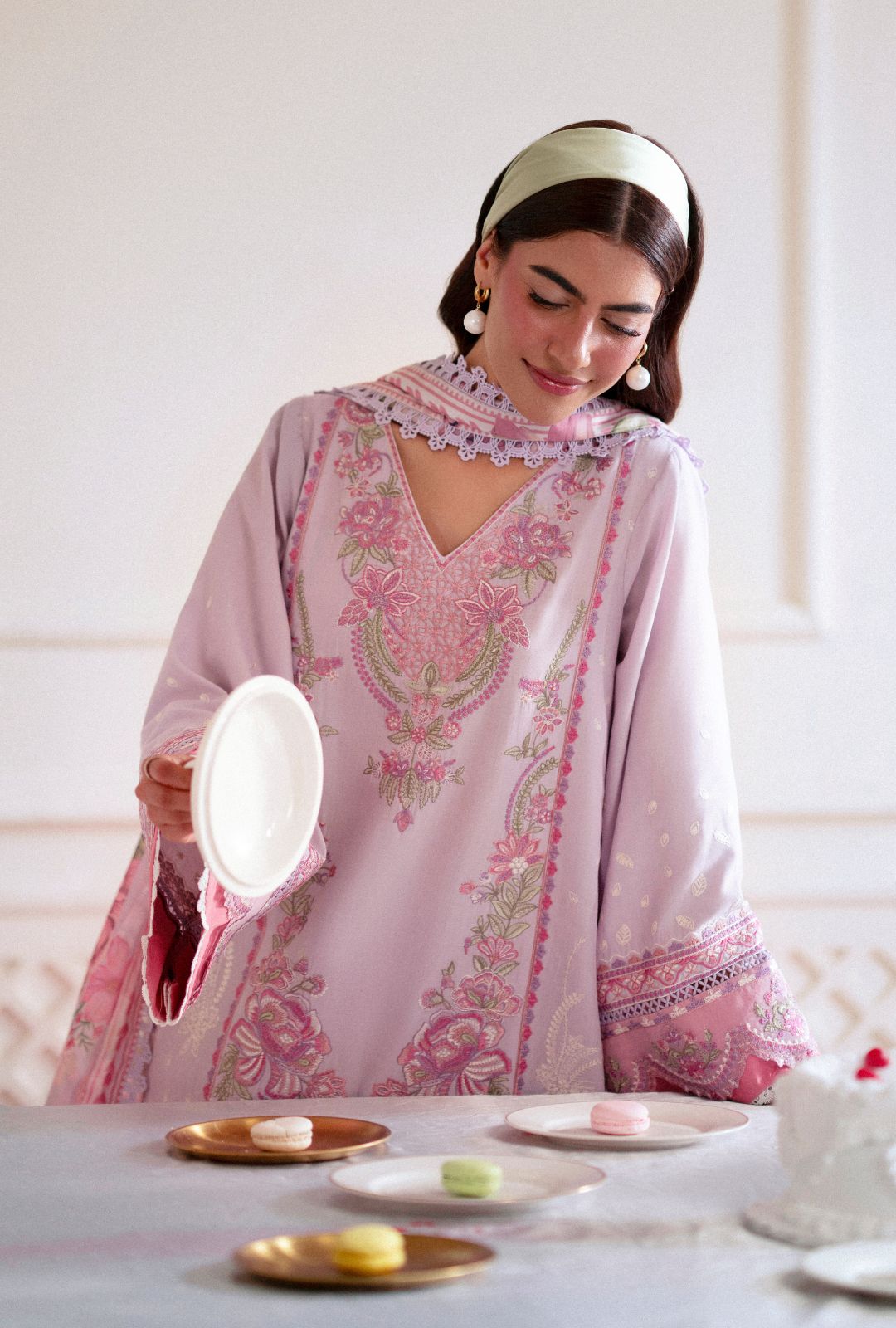 • Embroidered lawn sleeves