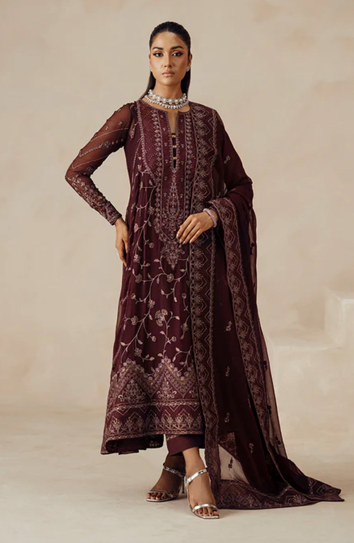 Embroidered Neck (Organza) 1 Pc