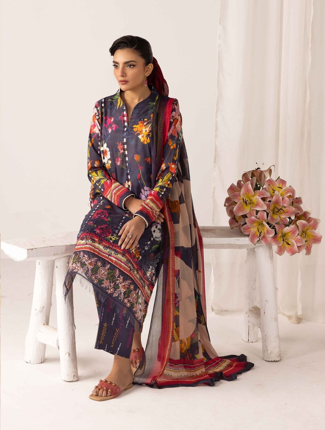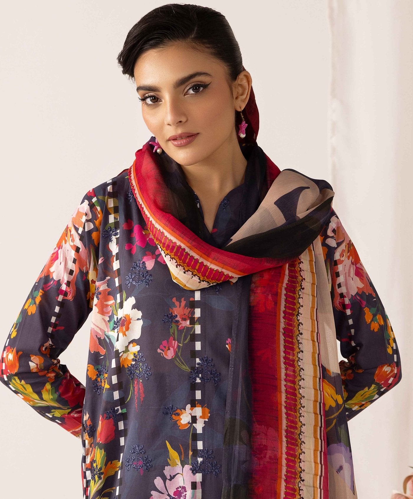 •Printed Embroidered Lawn Front