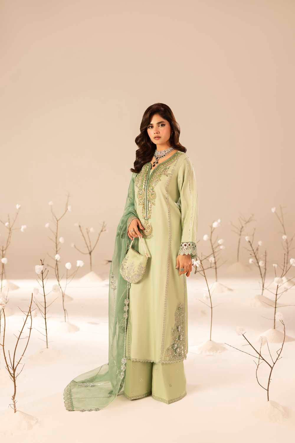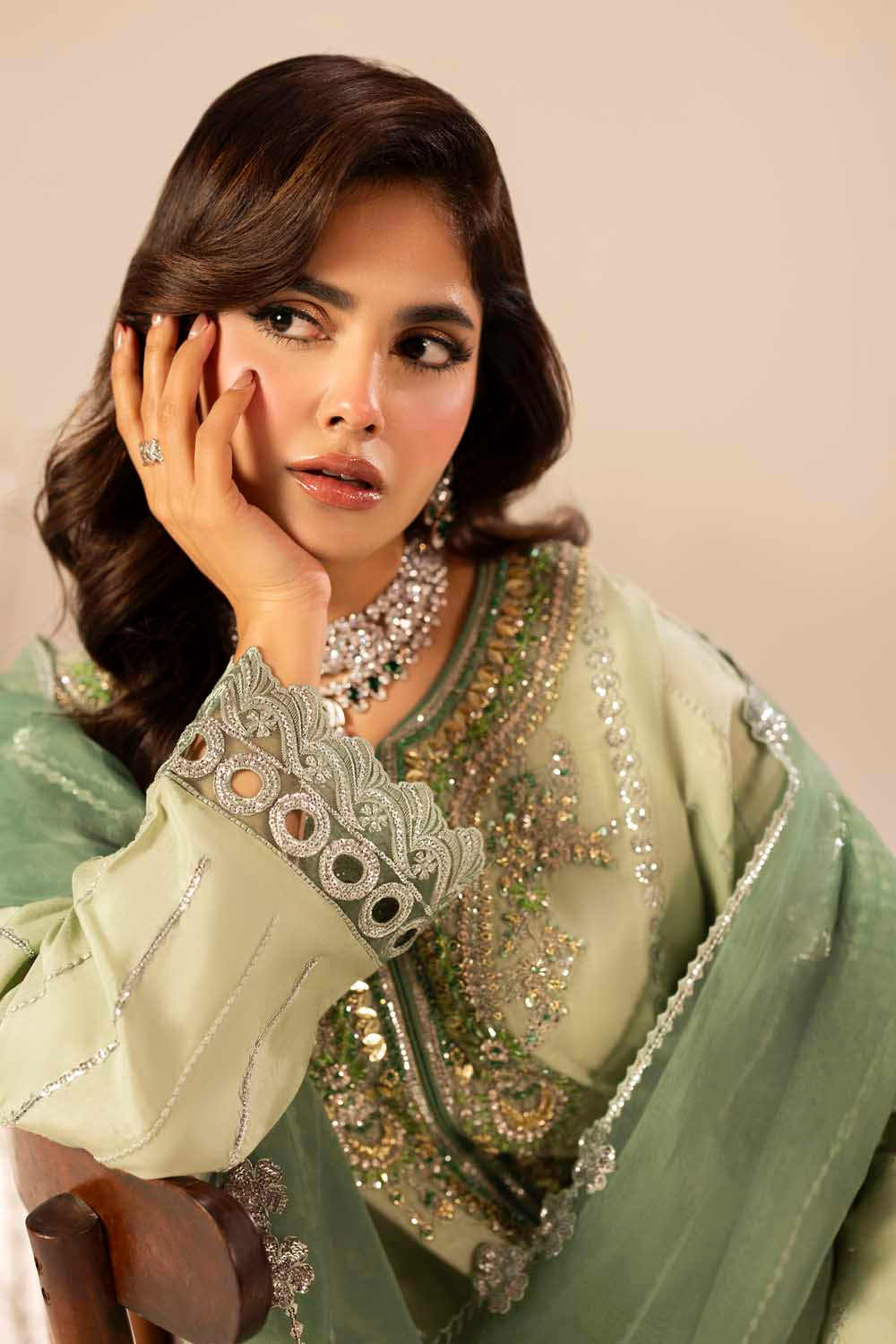 Dupatta: Organza embroidered dupatta, finished with an embroidered pallu border.