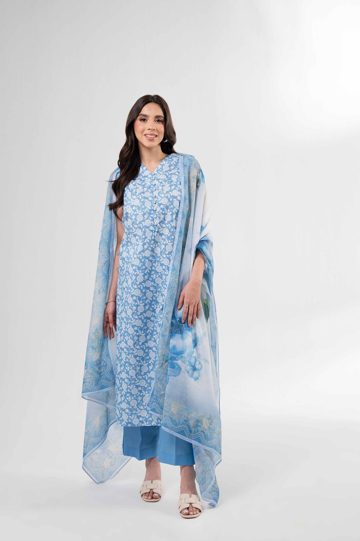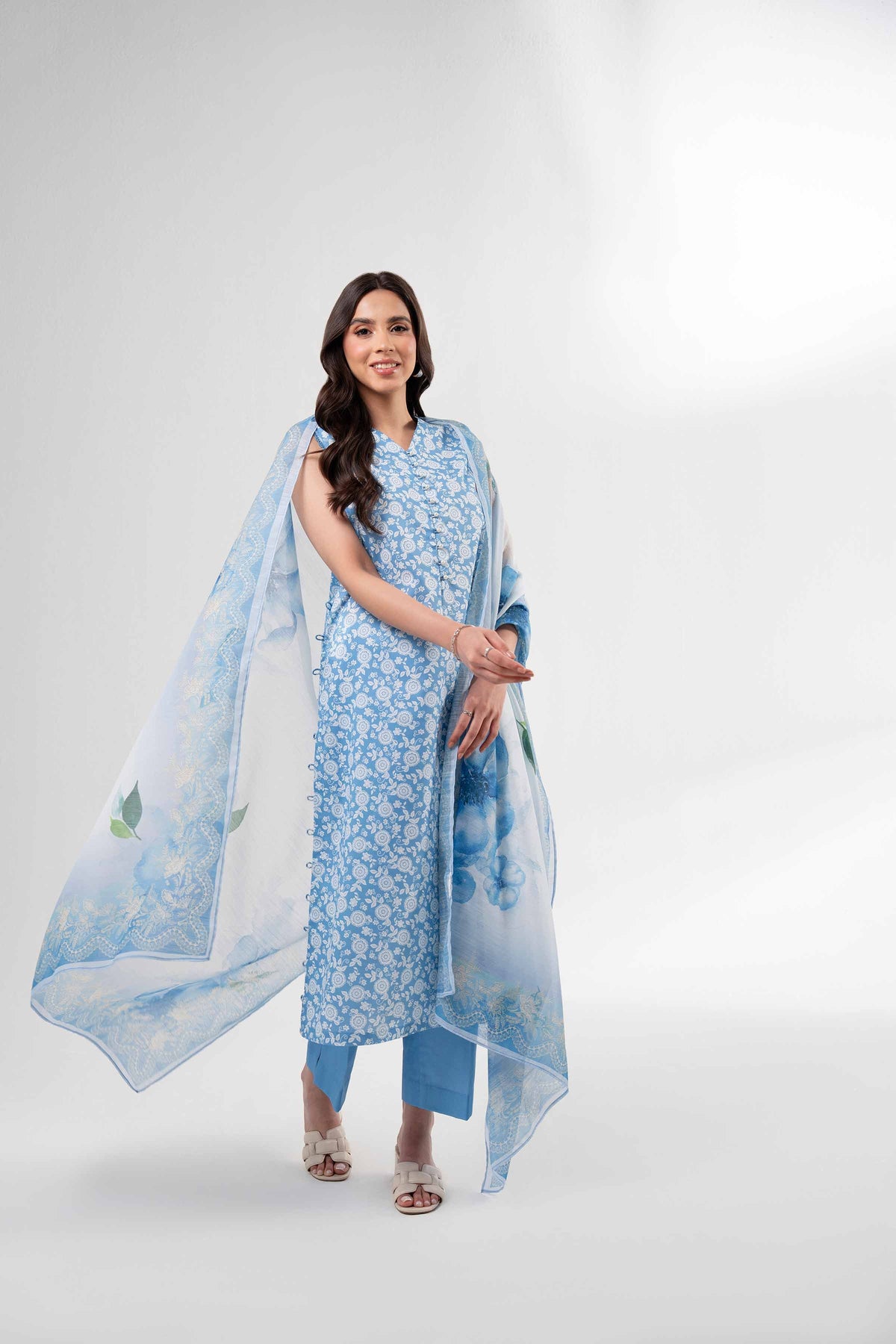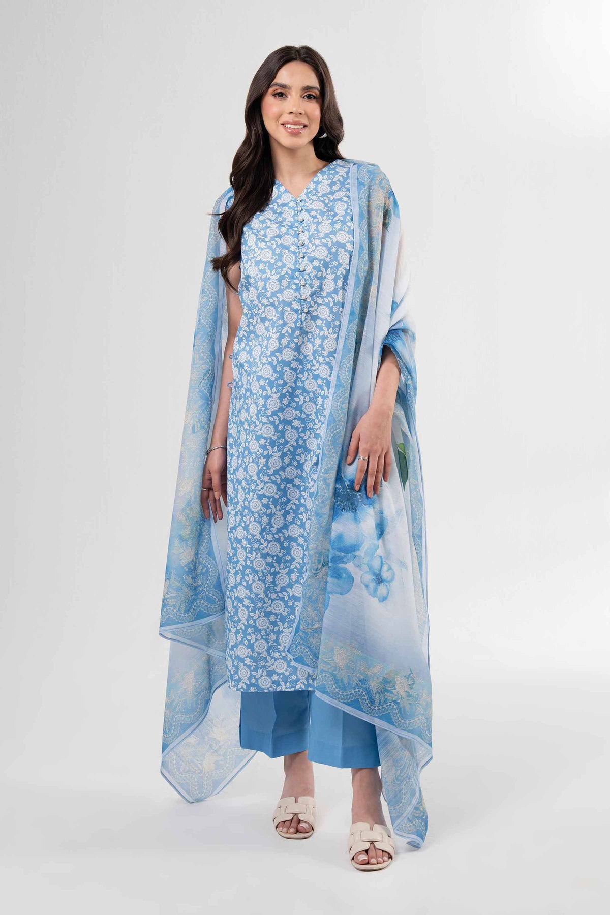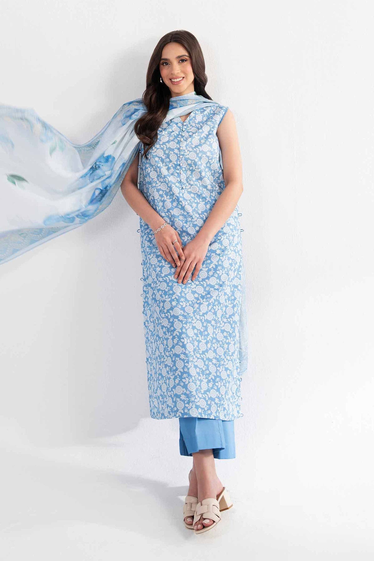 A season’s story told in color and print this digitally printed three-piece from our latest Summer Collection blends bold design, fluid fabric, and effortless elegance for a truly expressive look.