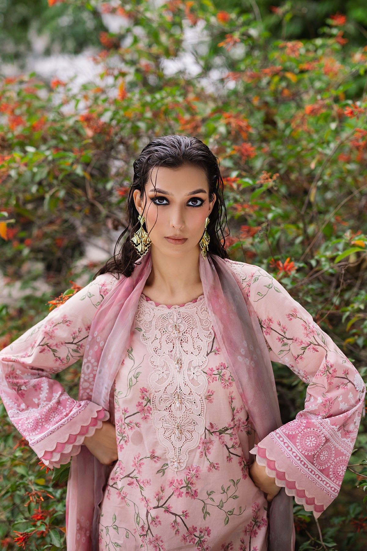 • Printed Lawn Shirt With Chikankari Lace Neckline