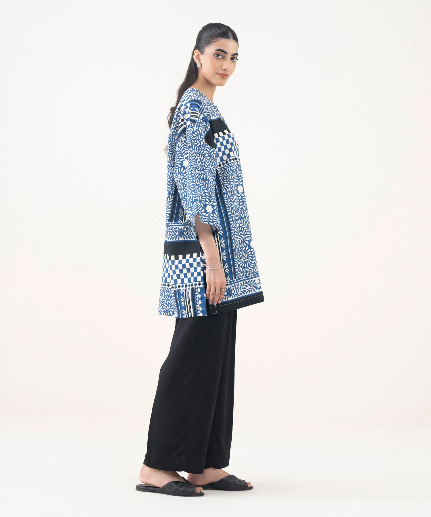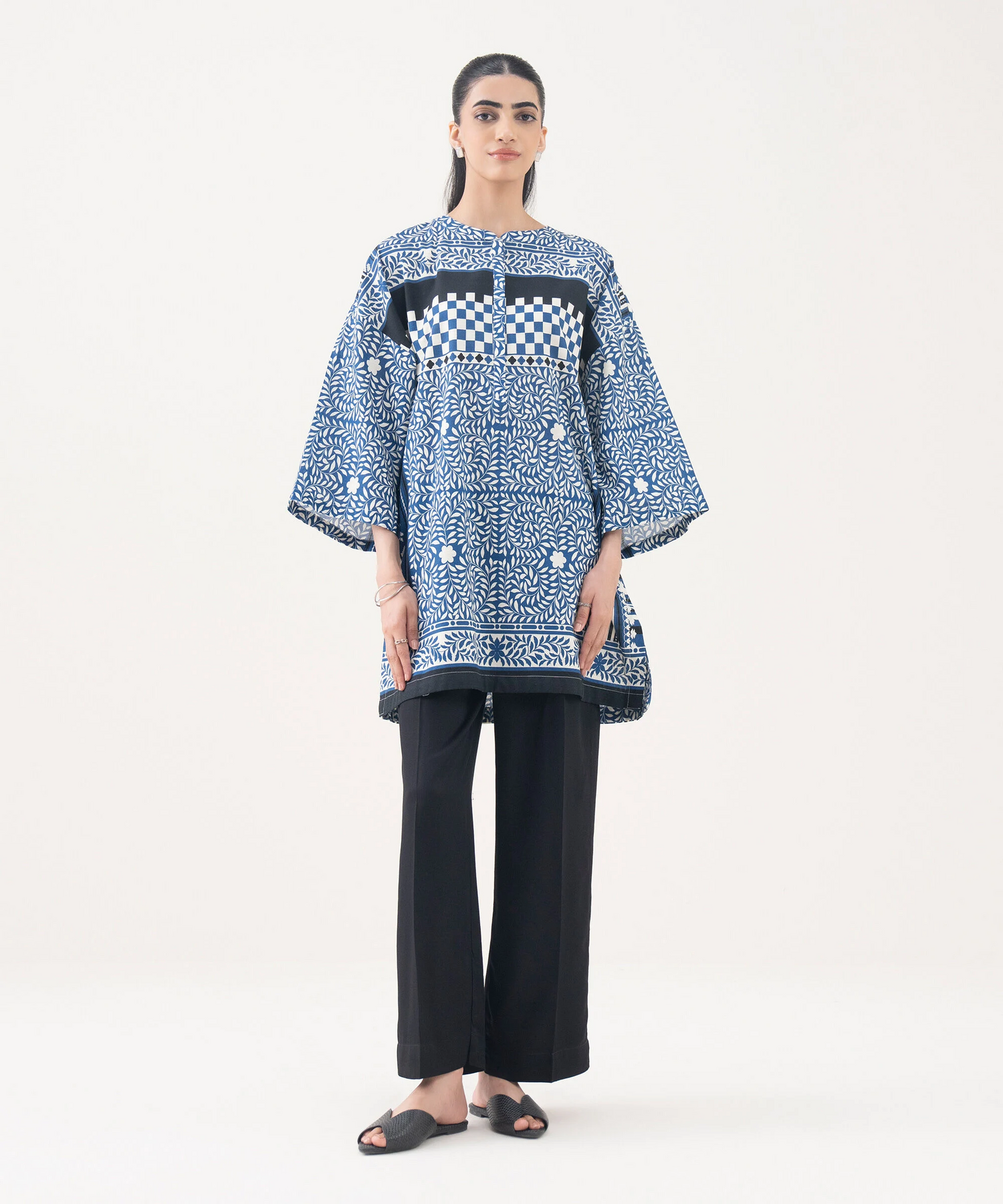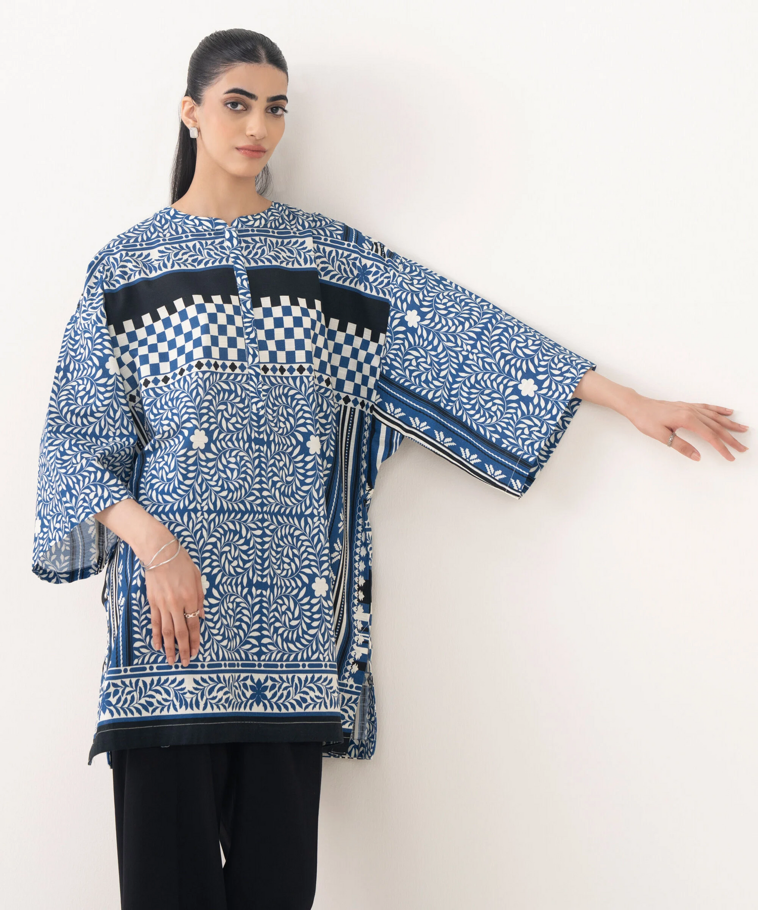 Printed Front Panel, Printed Back Panel, Ban With Placket Neckline, Full Sleeves, Short Length