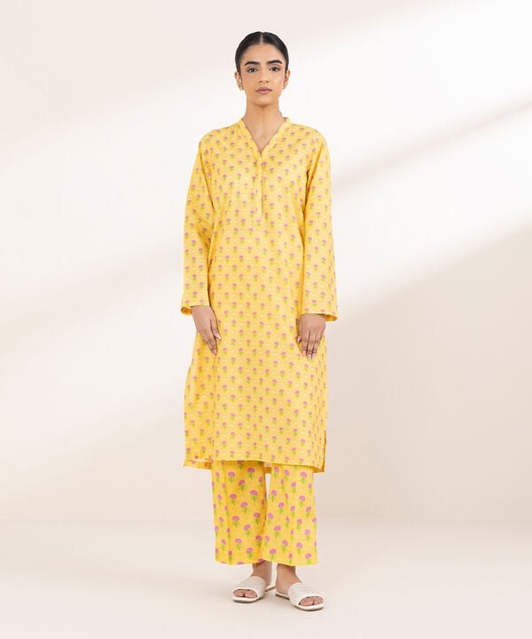 Printed Front Panel, Printed Back Panel, Y Neckline, Full Sleeves, Calf Length