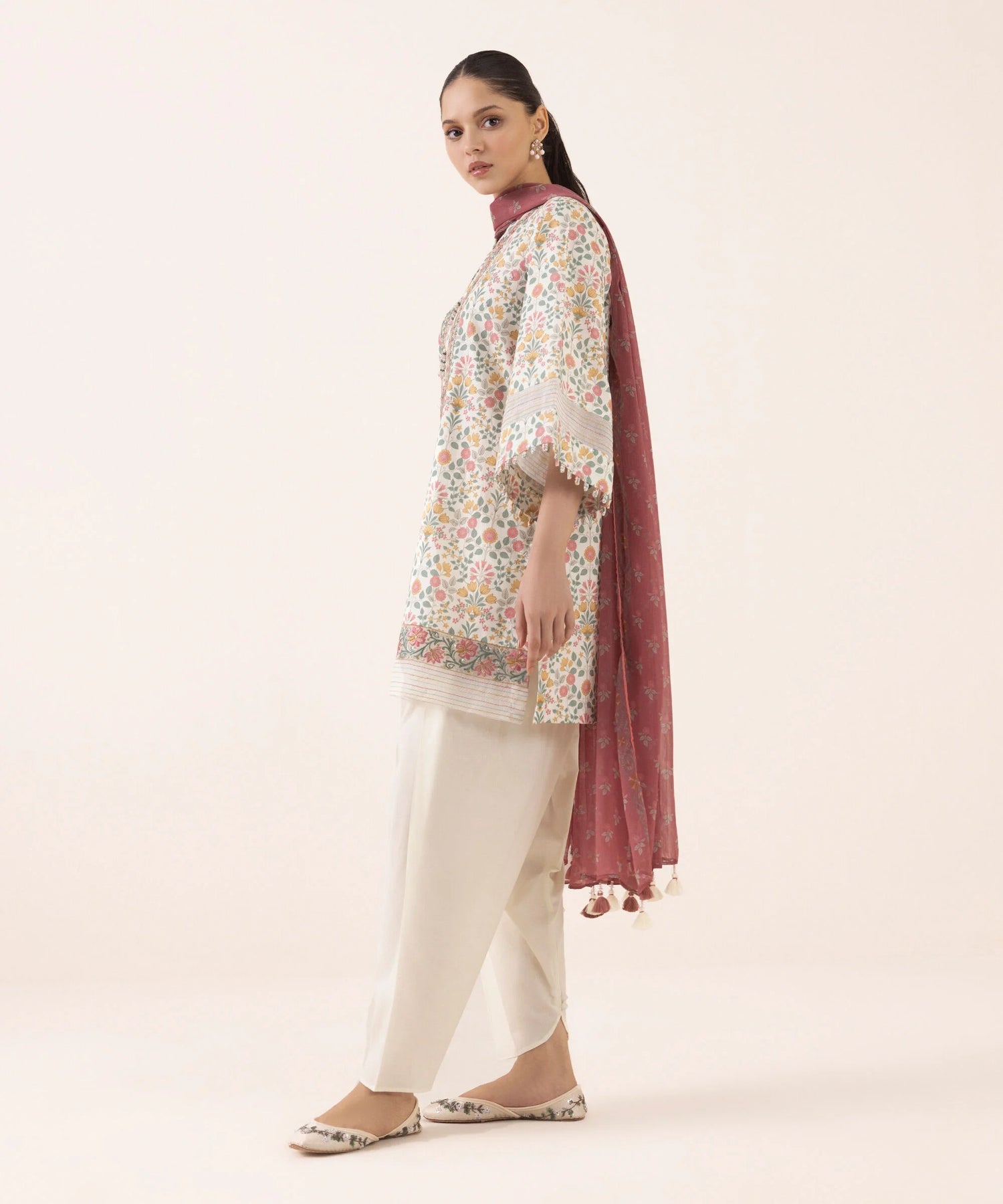 Printed Embroidered Textured Cotton Shirt Sleeves