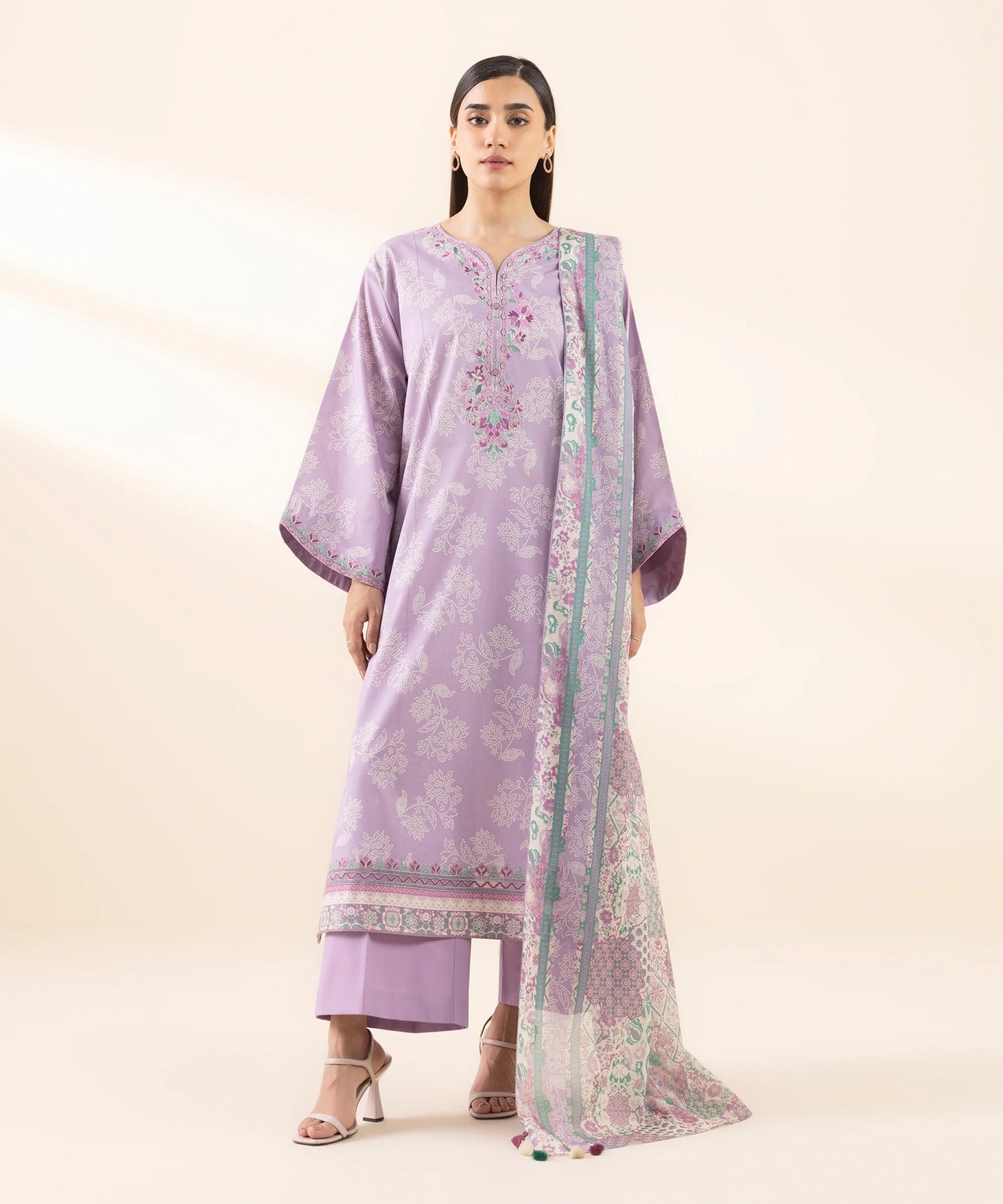 Fabric: Printed Lawn Shirt with embroidered front patch, daman and sleeves.