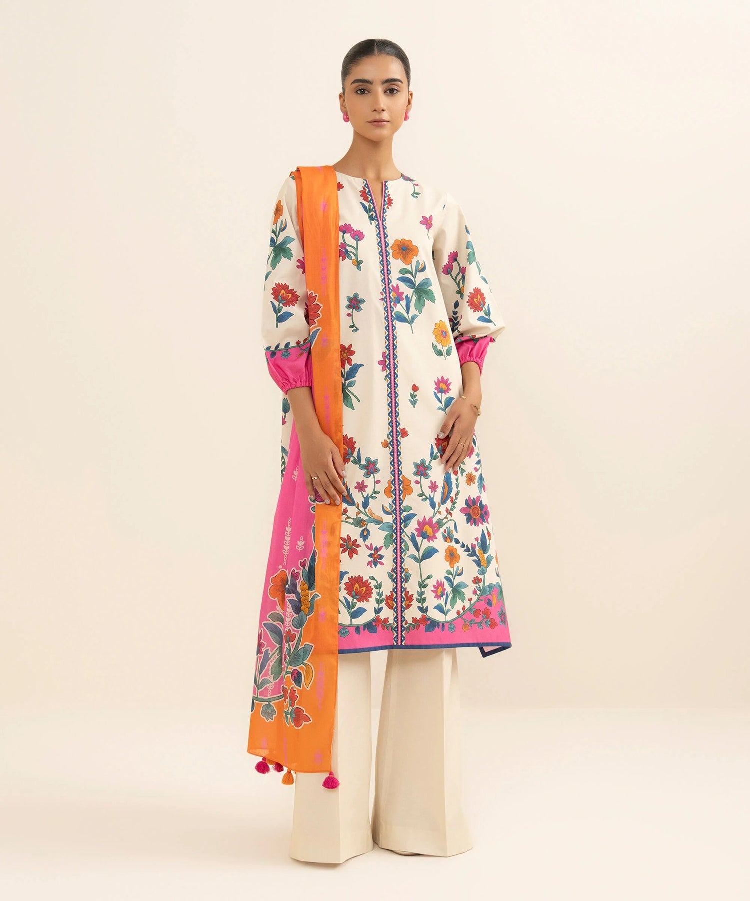 3 Piece - Printed Cotton Suit