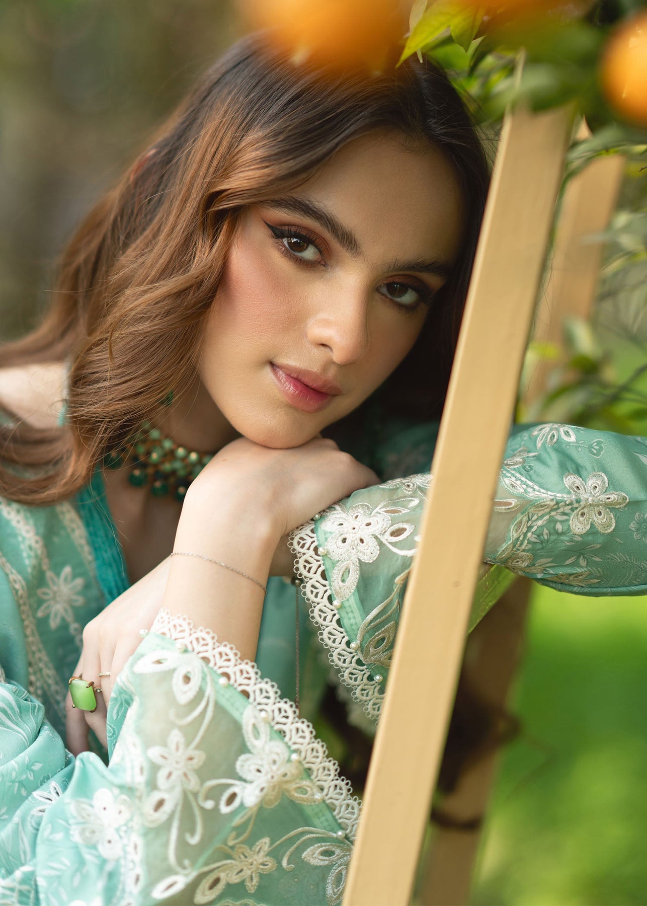 • Embroidered sleeves border (Organza)