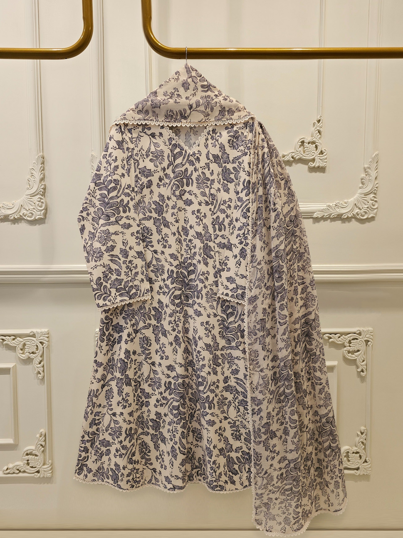 A cambric digital printed suit is crafted from soft, lightweight cambric fabric, offering a smooth feel and breathable comfort. Featuring vibrant digital prints with fine detailing, it delivers rich colors and a polished look, making it perfect for everyday wear as well as casual outings.