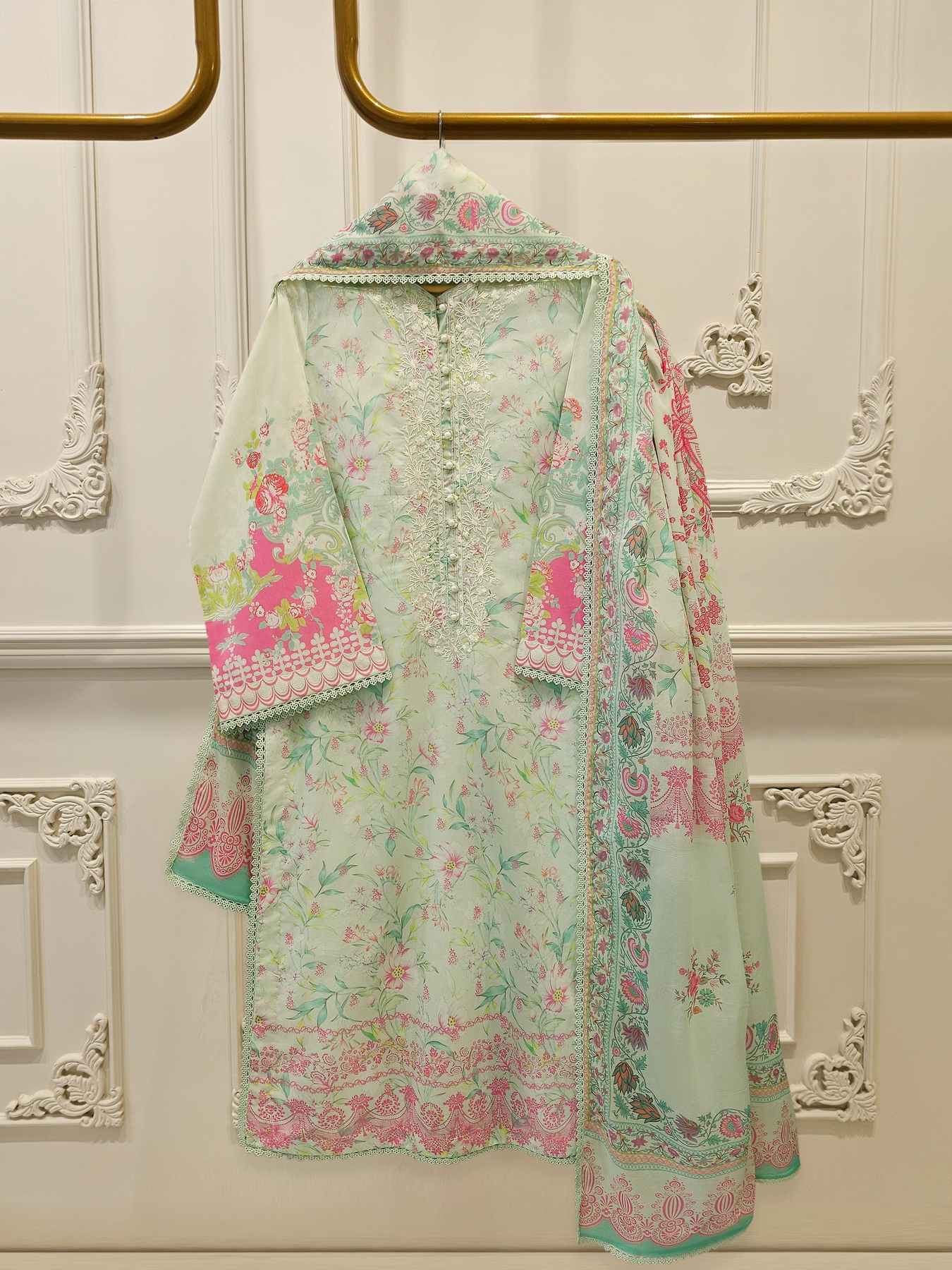 A cambric digital printed suit is crafted from soft, lightweight cambric fabric, offering a smooth feel and breathable comfort. Featuring vibrant digital prints with fine detailing, it delivers rich colors and a polished look, making it perfect for everyday wear as well as casual outings.