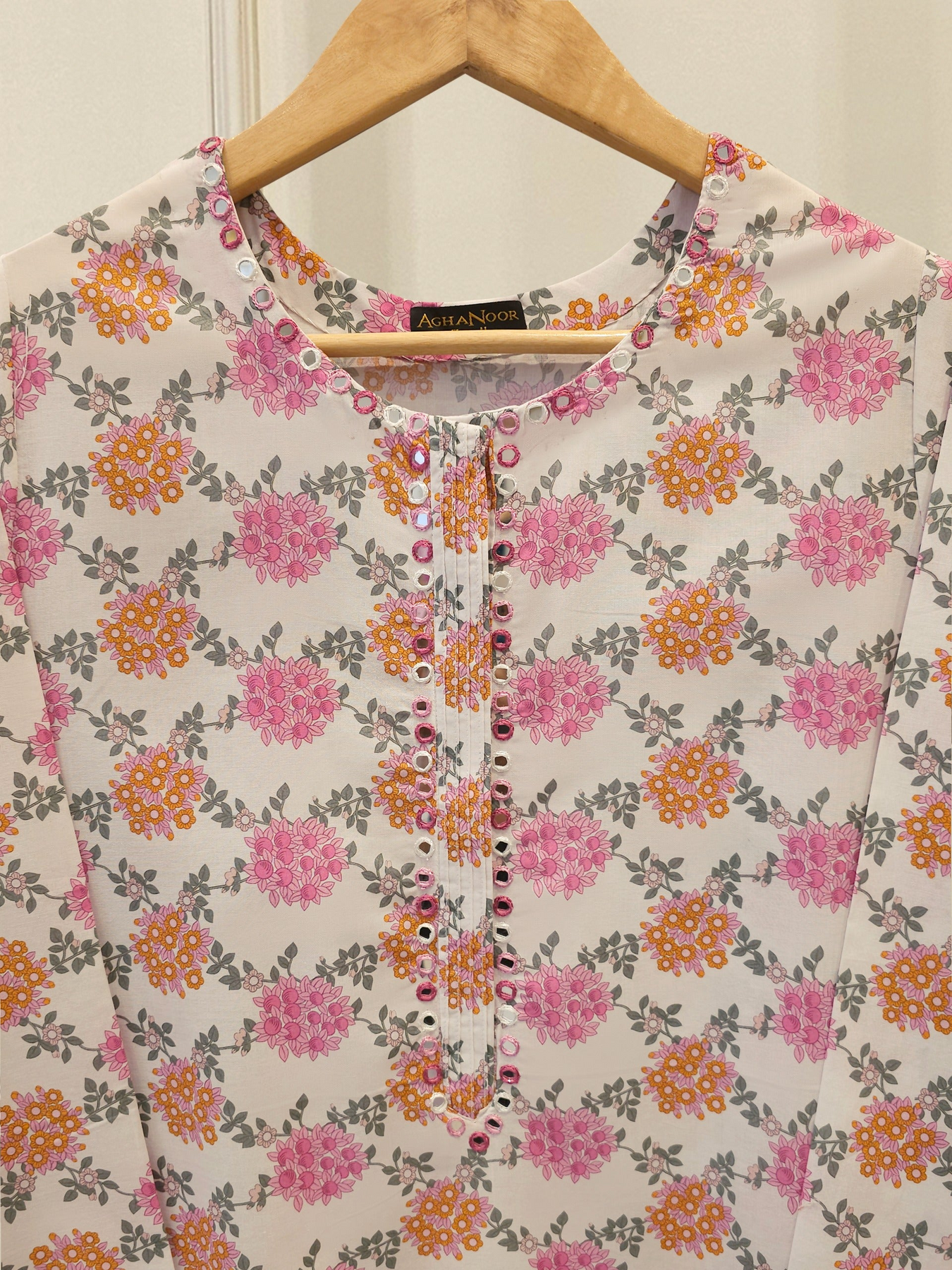 Elevate your summer wardrobe with this beautifully crafted off white cambric shirt, featuring intricate Chikan Kari work on the sleeves and daman. Designed for timeless elegance, this piece blends breathable lawn fabric with traditional craftsmanship, perfect for festive occasions or casual sophistication.