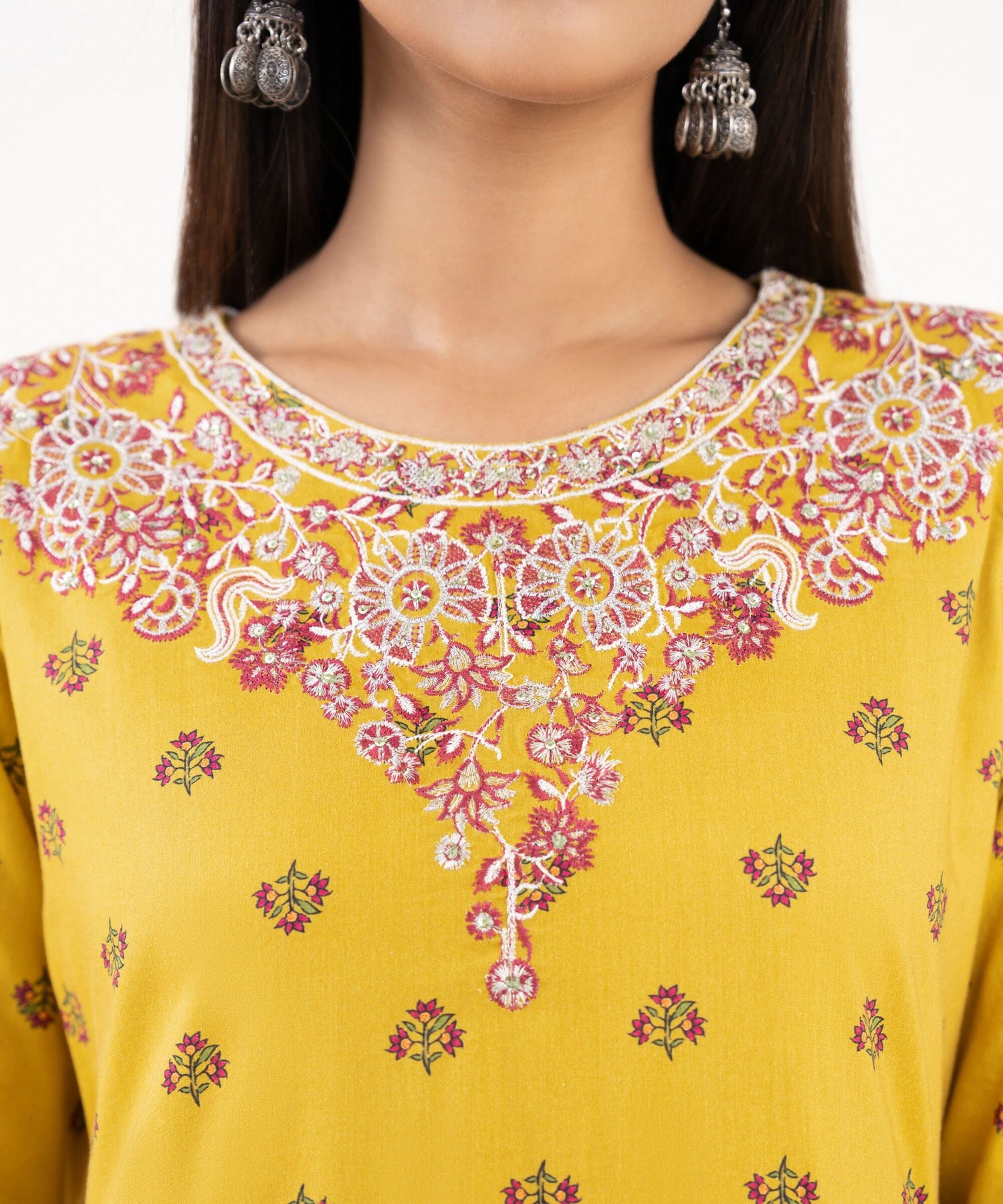 Printed With Embroidered Front Panel, Printed With Embroidered Back Panel, Round Neckline, Full Sleeves, Long Length