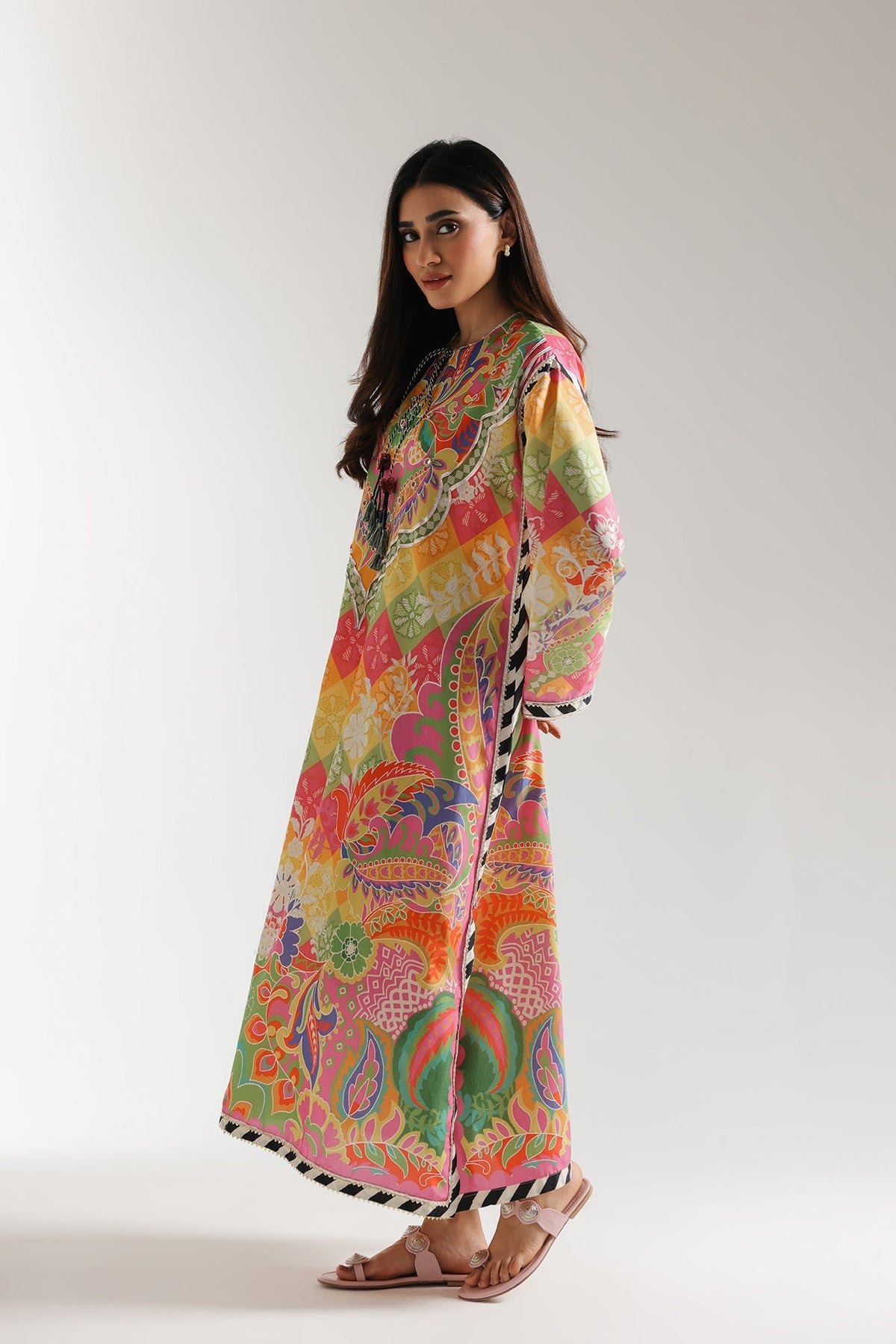 Elevate your style game with this aesthetically rich graceful outfit. This trendy A-line shirt boasts a beautiful floral print and dazzling gotta embellishments enhanced with artificial mirror details, making it the perfect statement piece for any event. With its elegant silhouette and artistic designs, it's a must-have for the festive season.