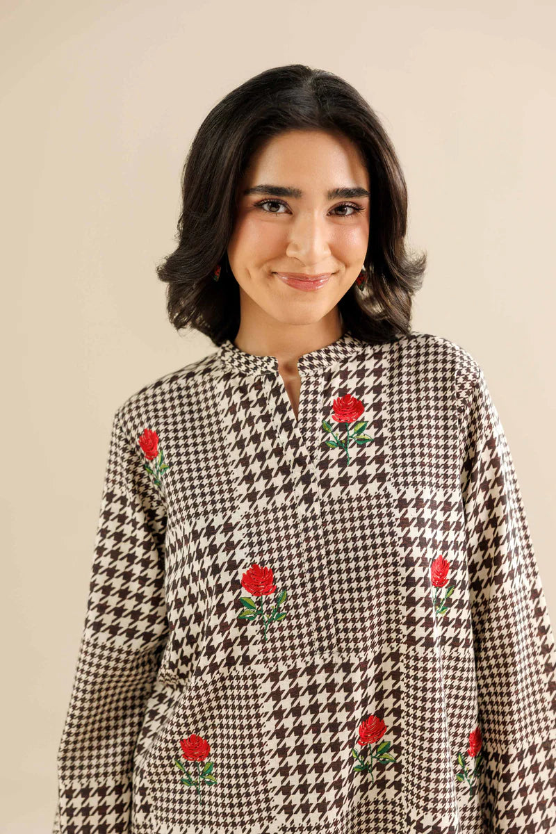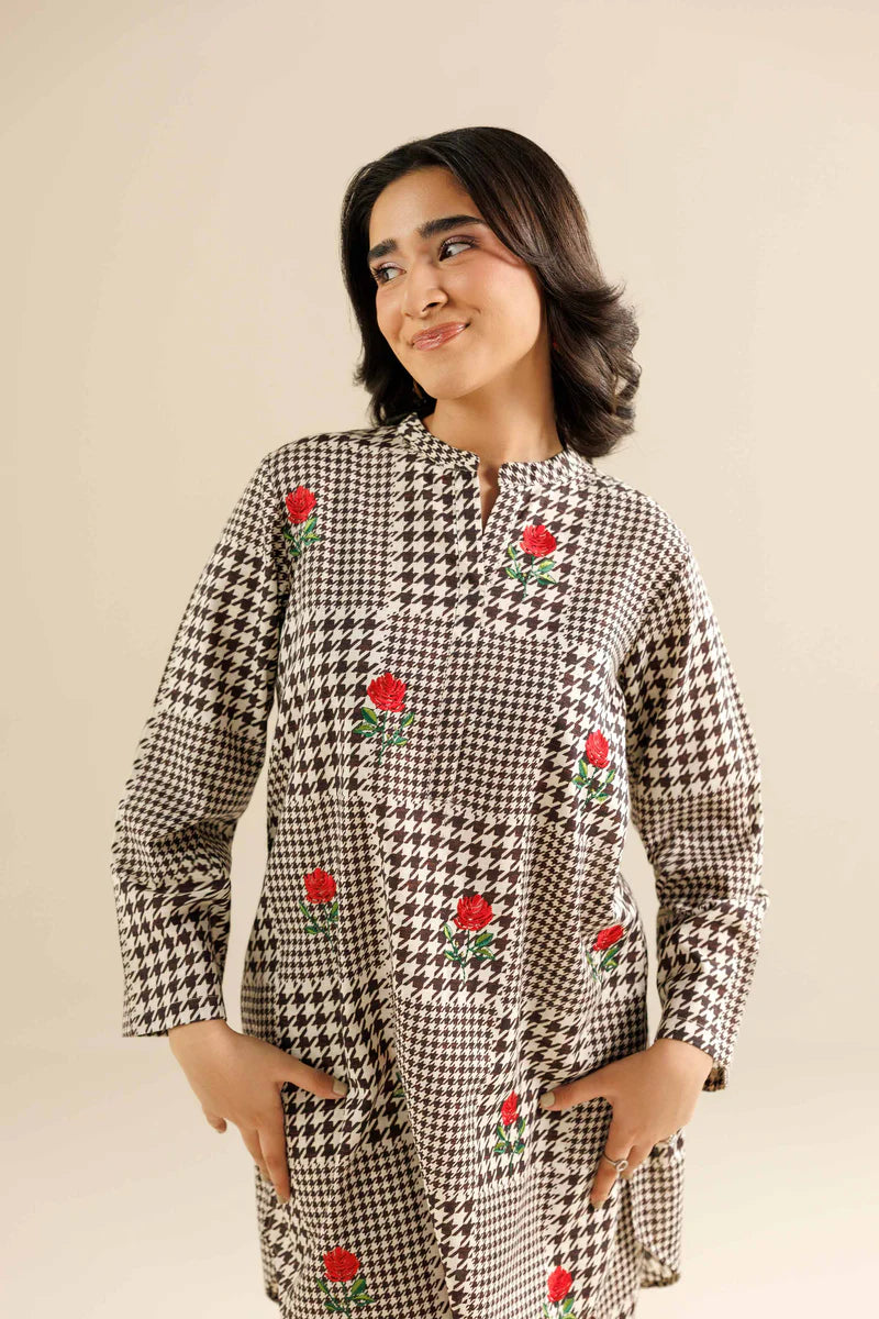 Front embroidered short tunic featuring full sleeves.