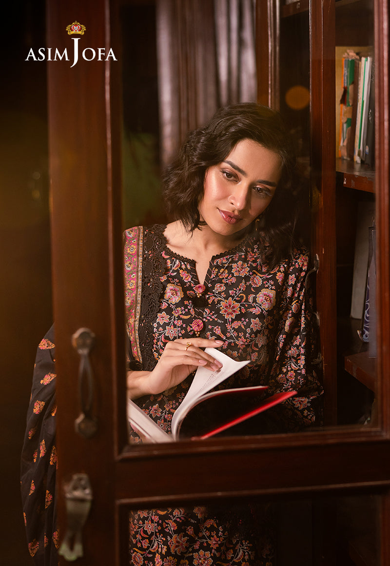 Channel effortless elegance with this black ensemble, showcasing floral foliage in liberty style. Paired with a contrasting dupatta, this outfit is perfect for making a sophisticated statement.