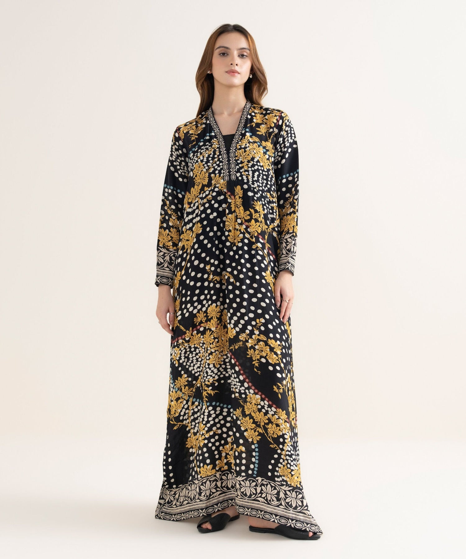 Printed Front Panel, Printed Back Panel, V Neckline, Full Sleeves, Long Length