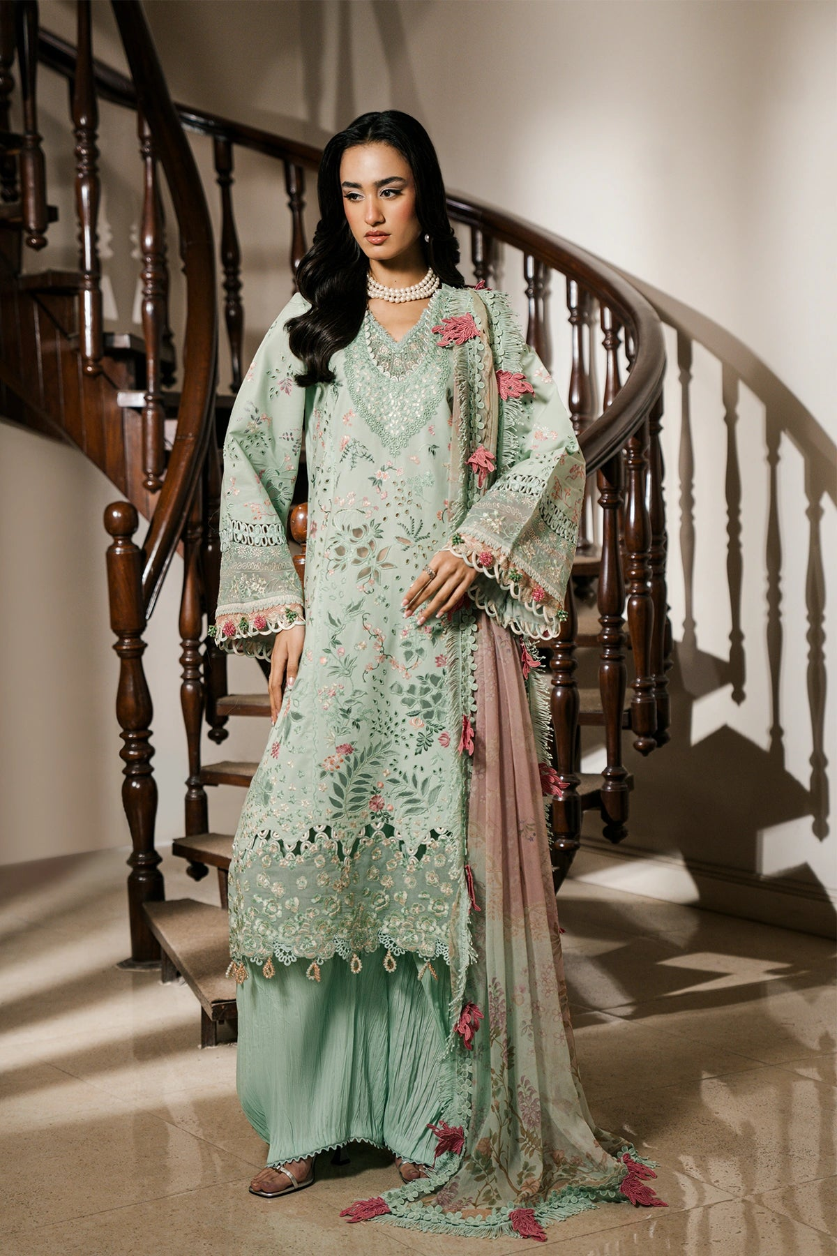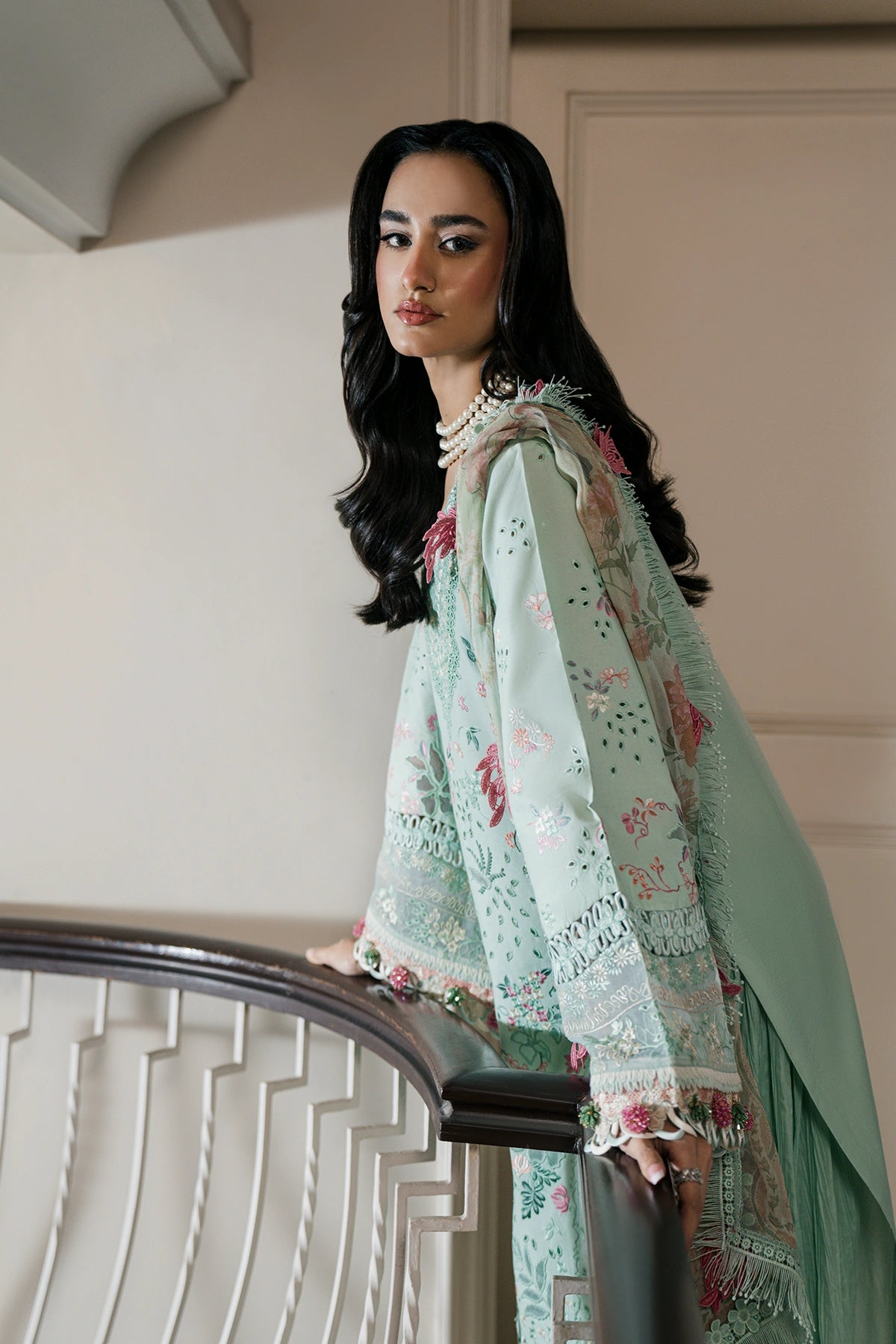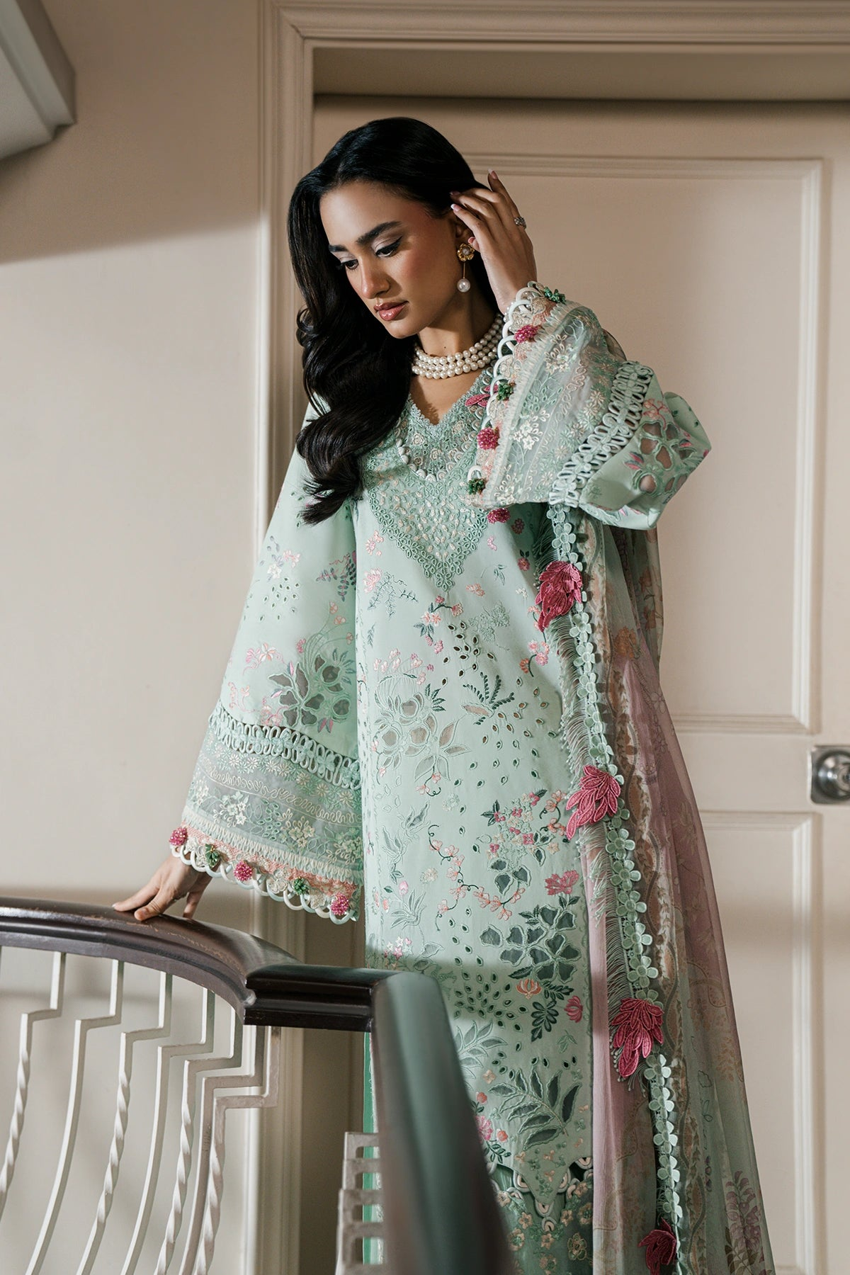 • Embroidered laser-cut front center panel with boring and sequins (Lawn)