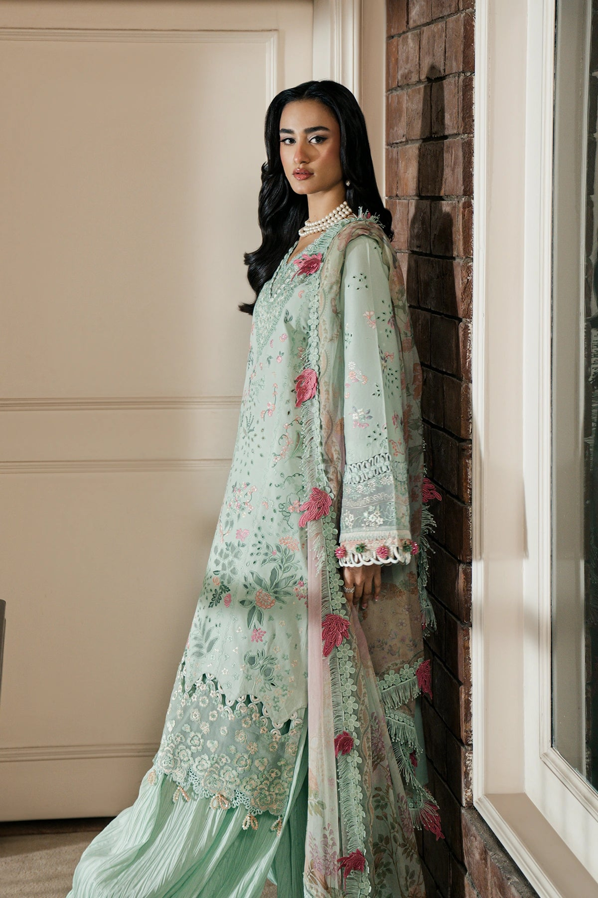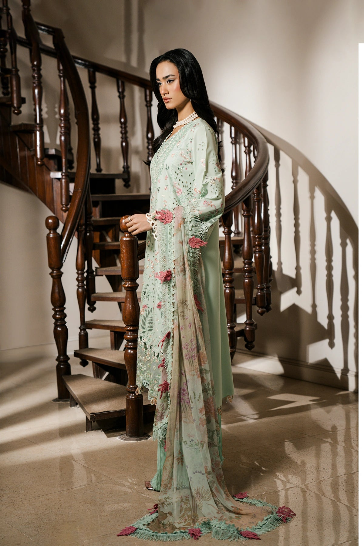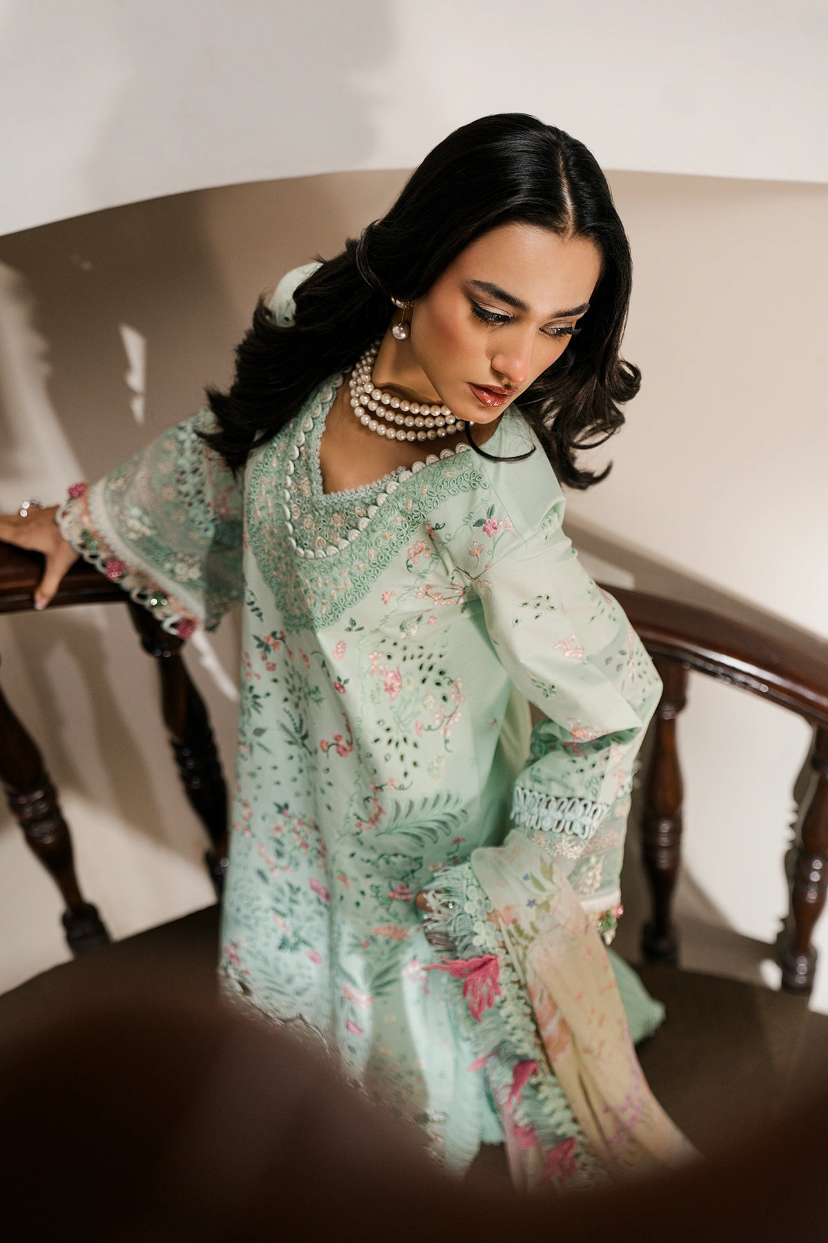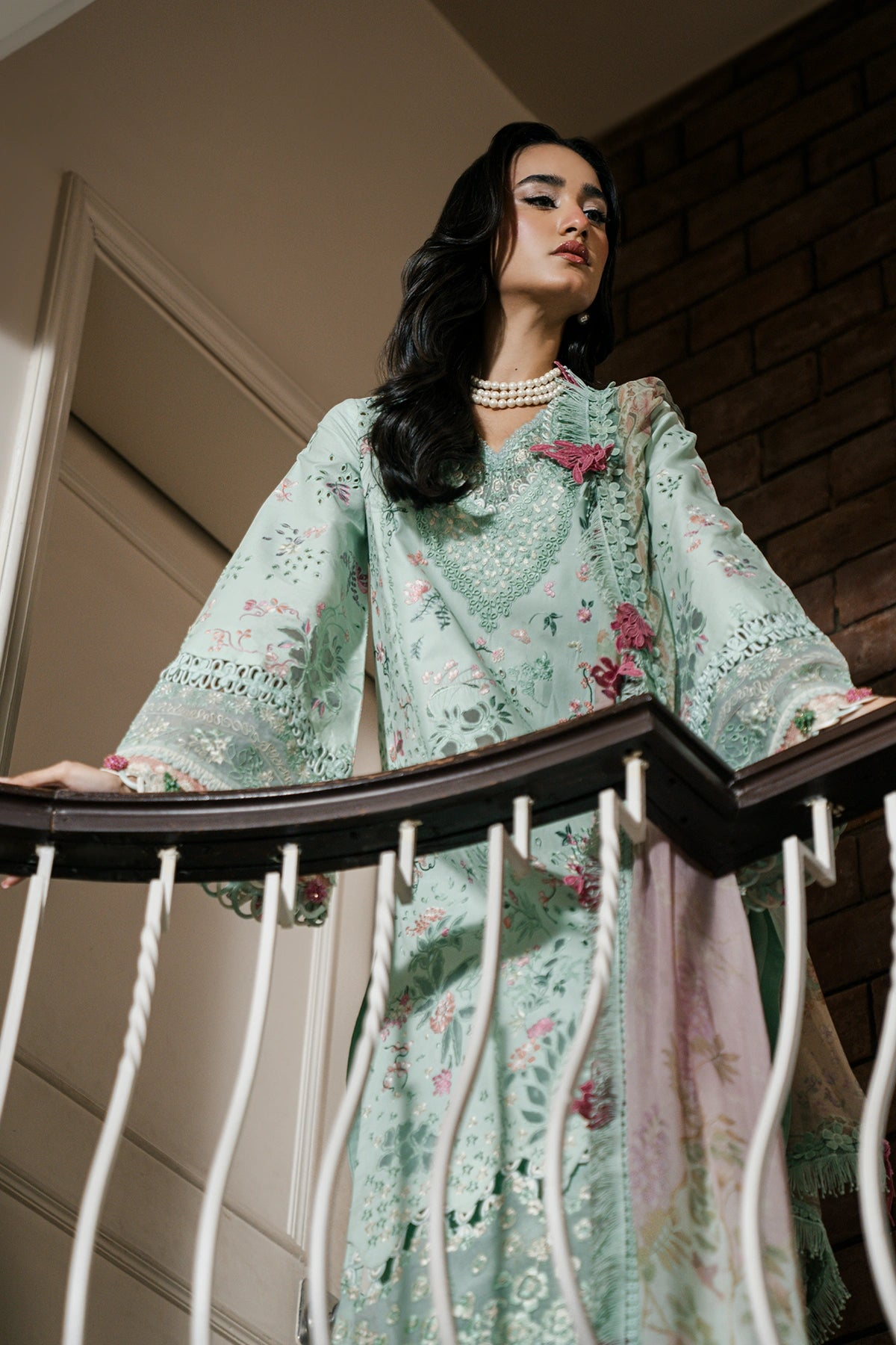 • Embroidered laser-cut front center panel with boring and sequins (Lawn)