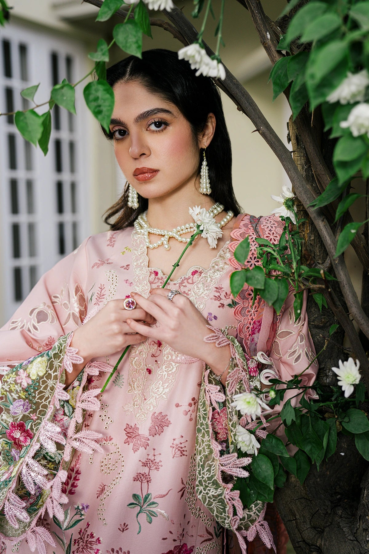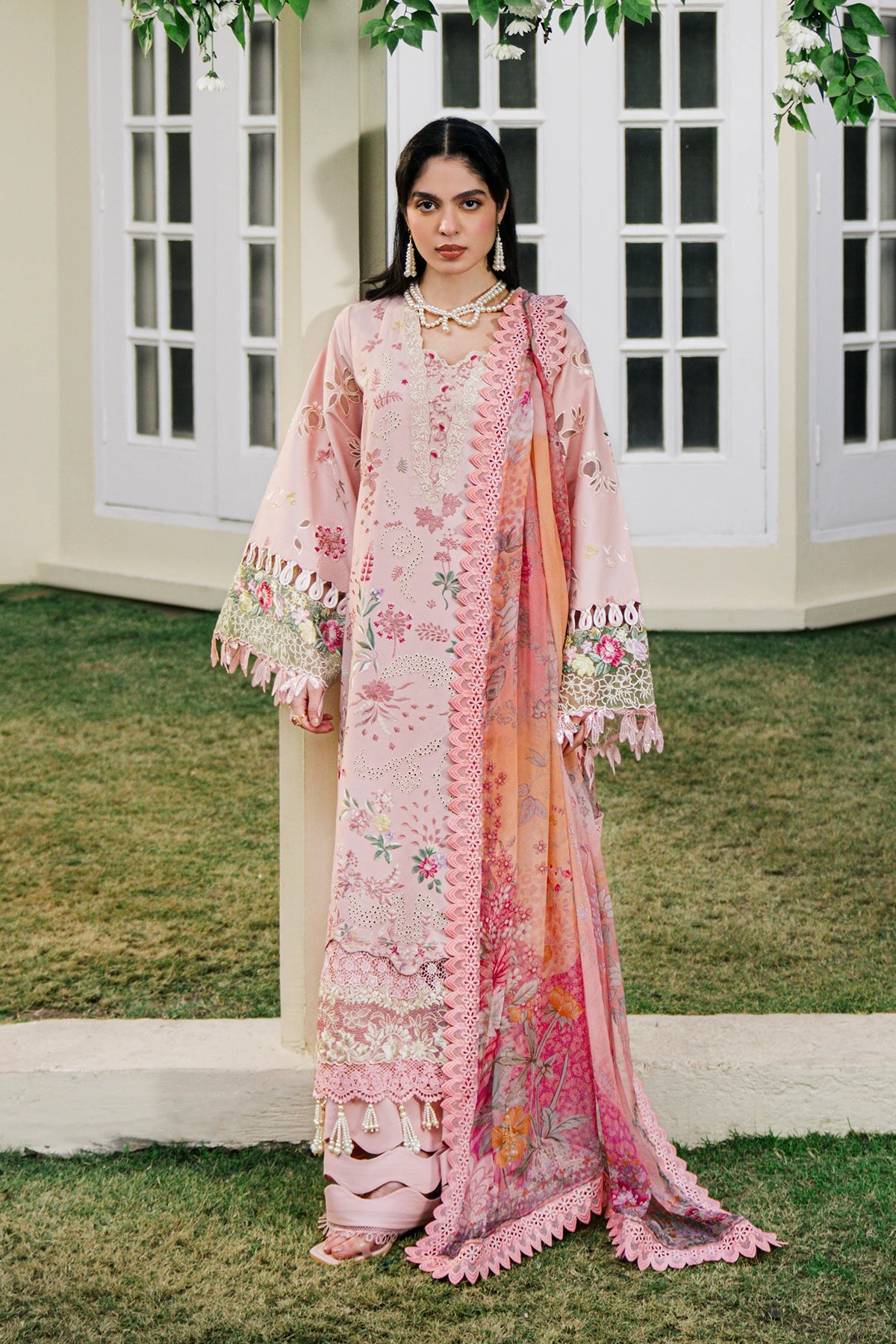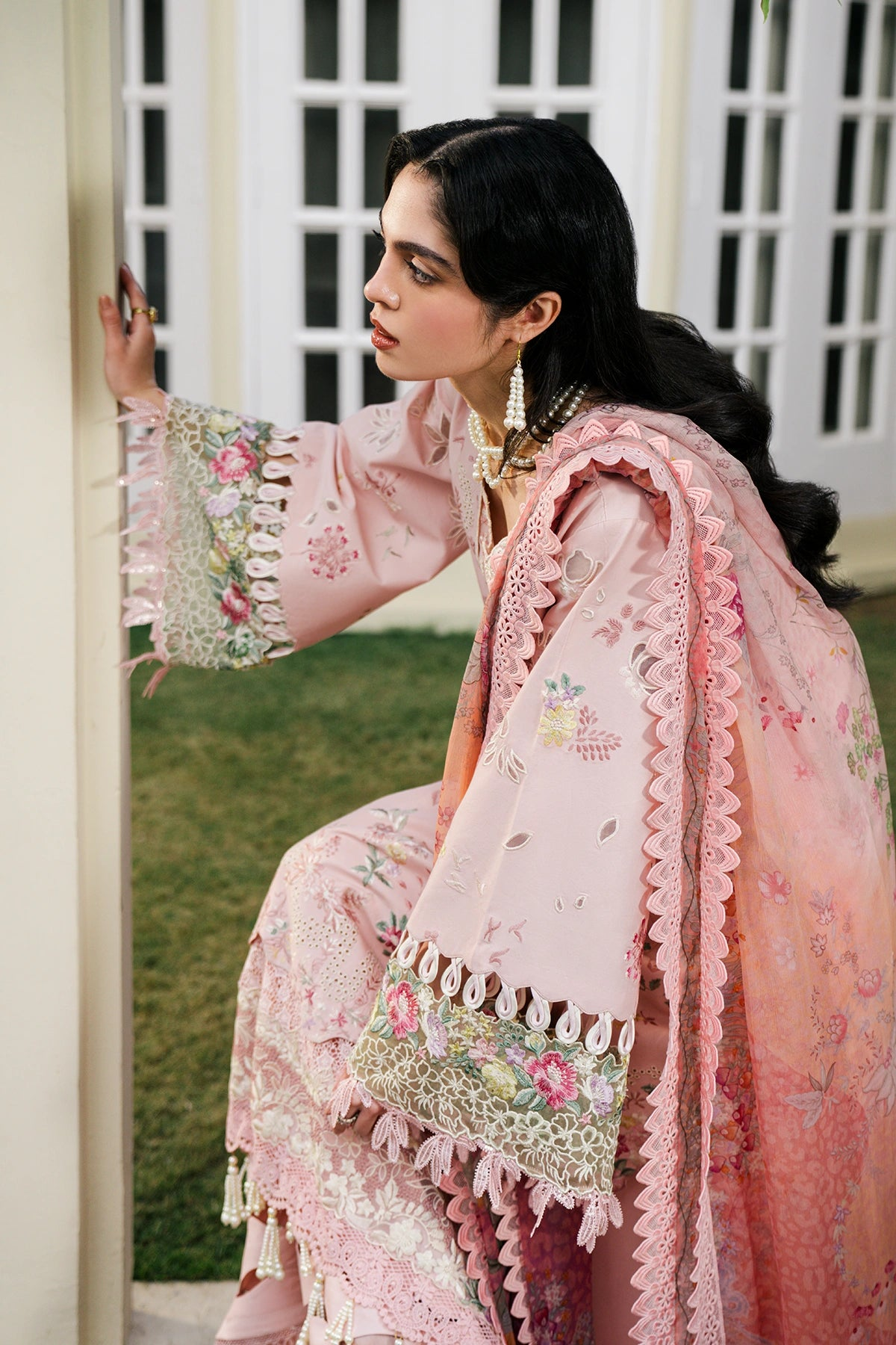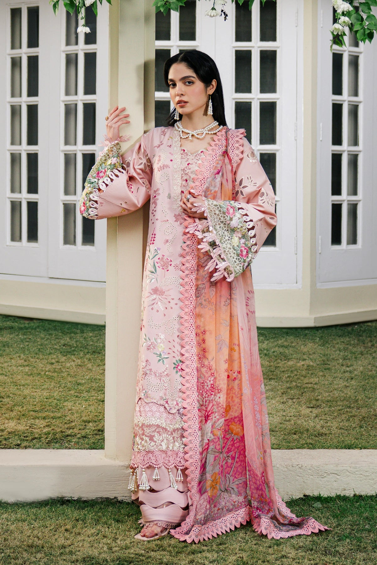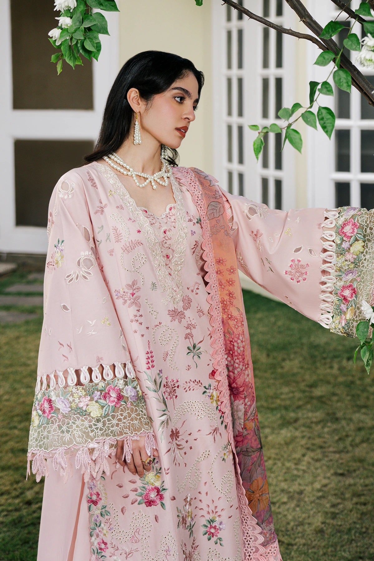 • Embroidered laser-cut sleeves (Lawn)