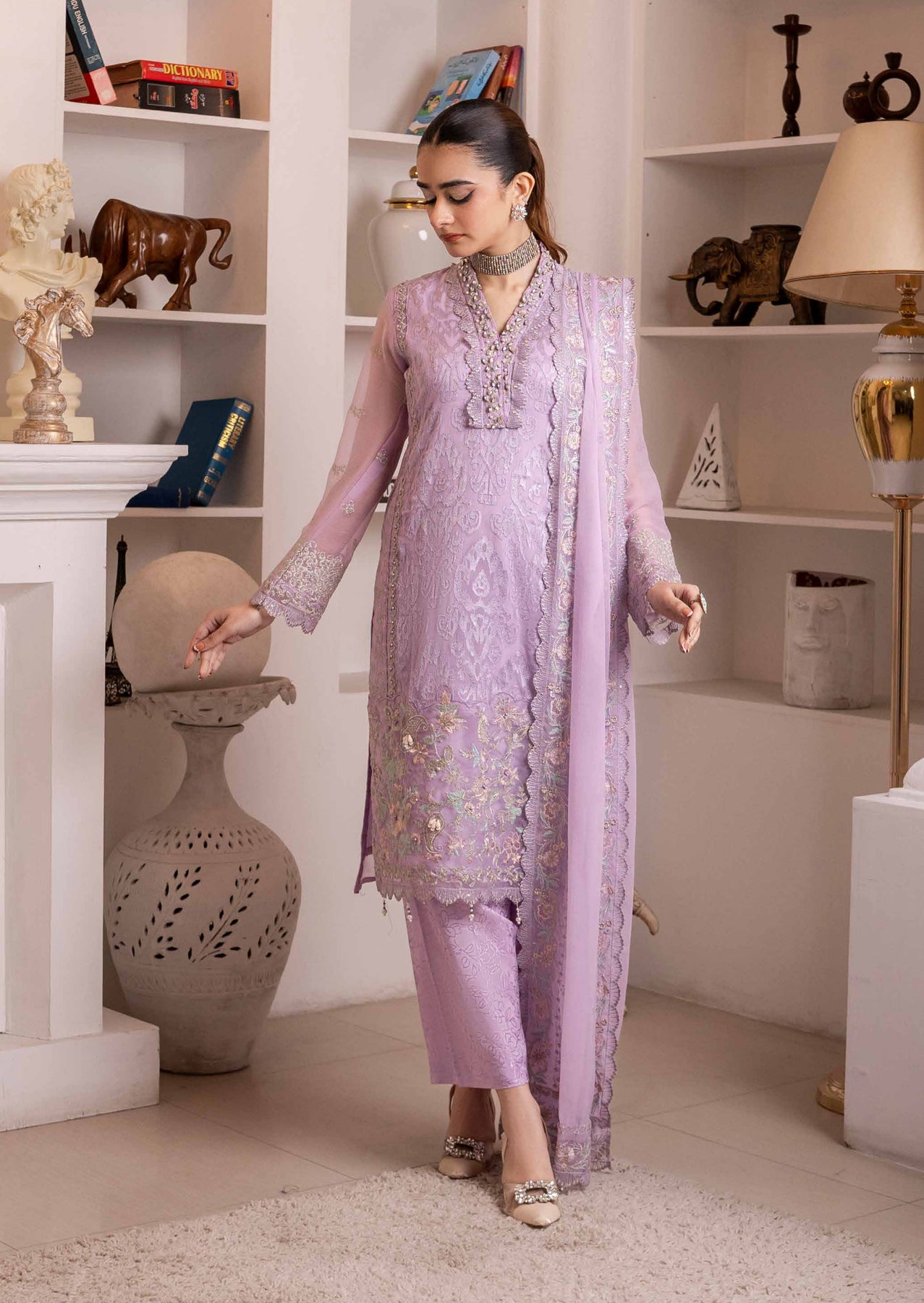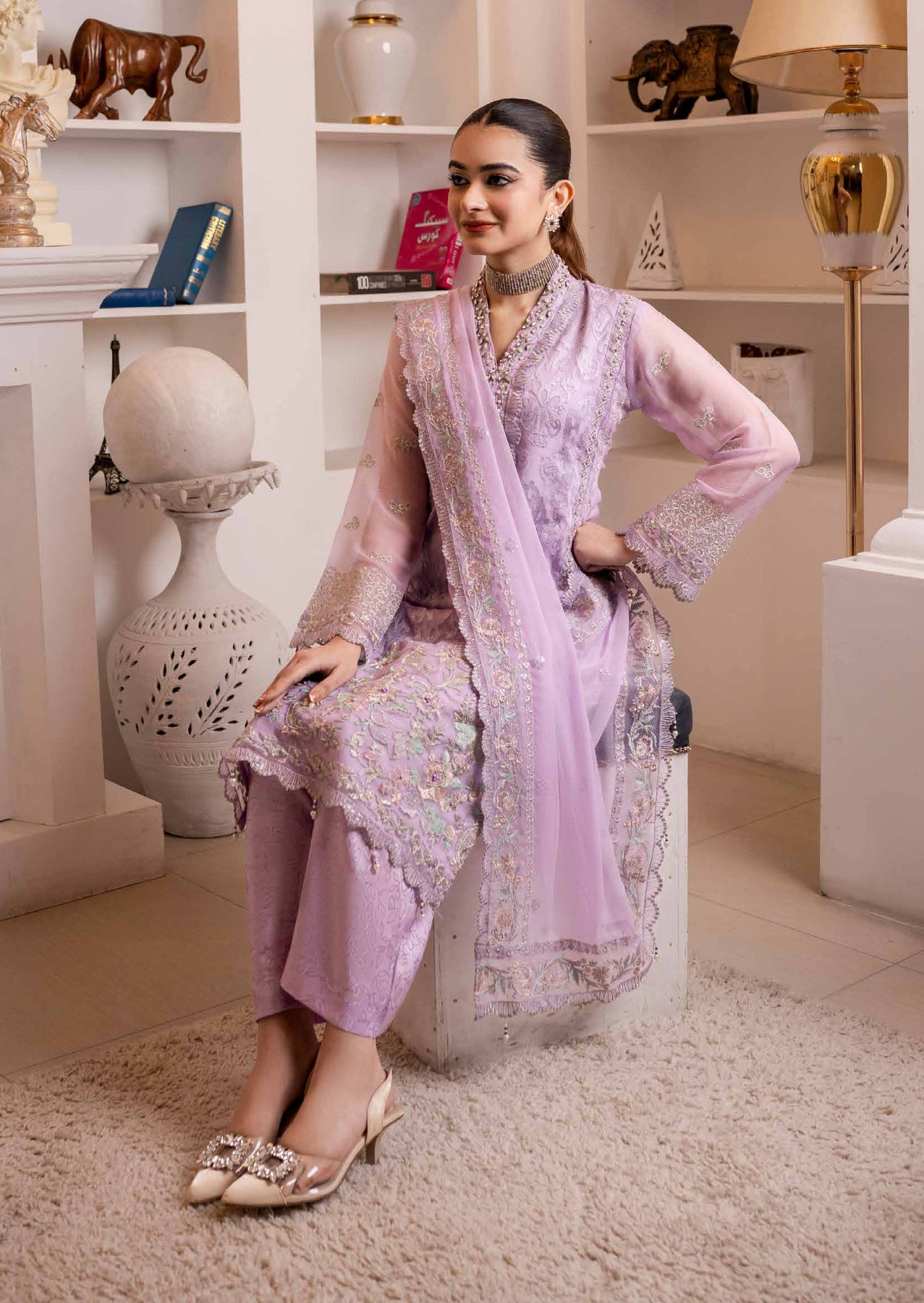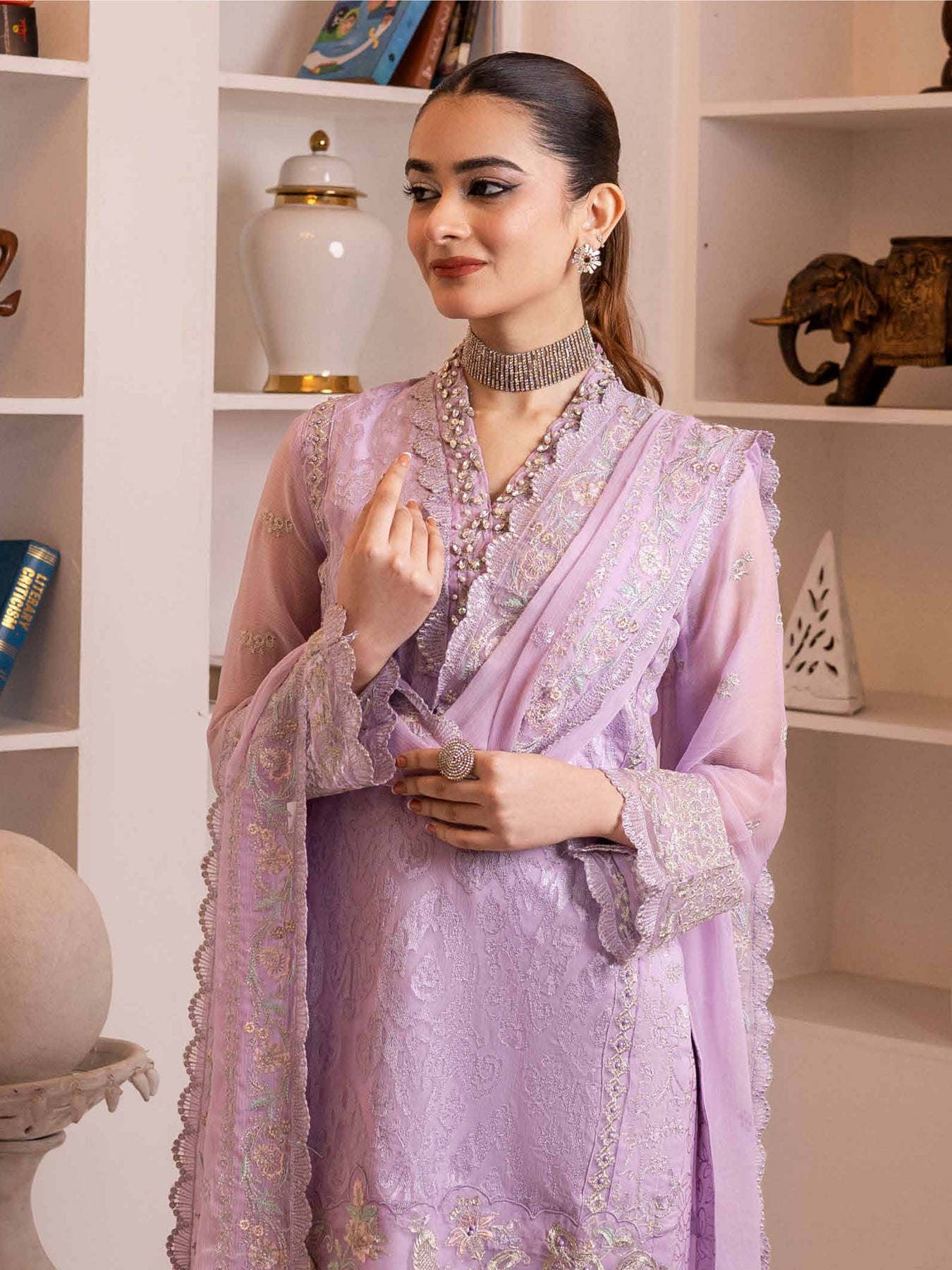 • Chiffon Four Border Crimkle Chiffon Embroidered Cutwork & Embellishments Ready To Wear Duppata