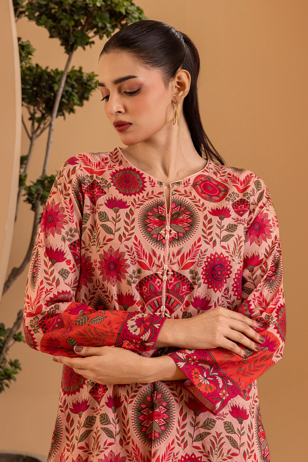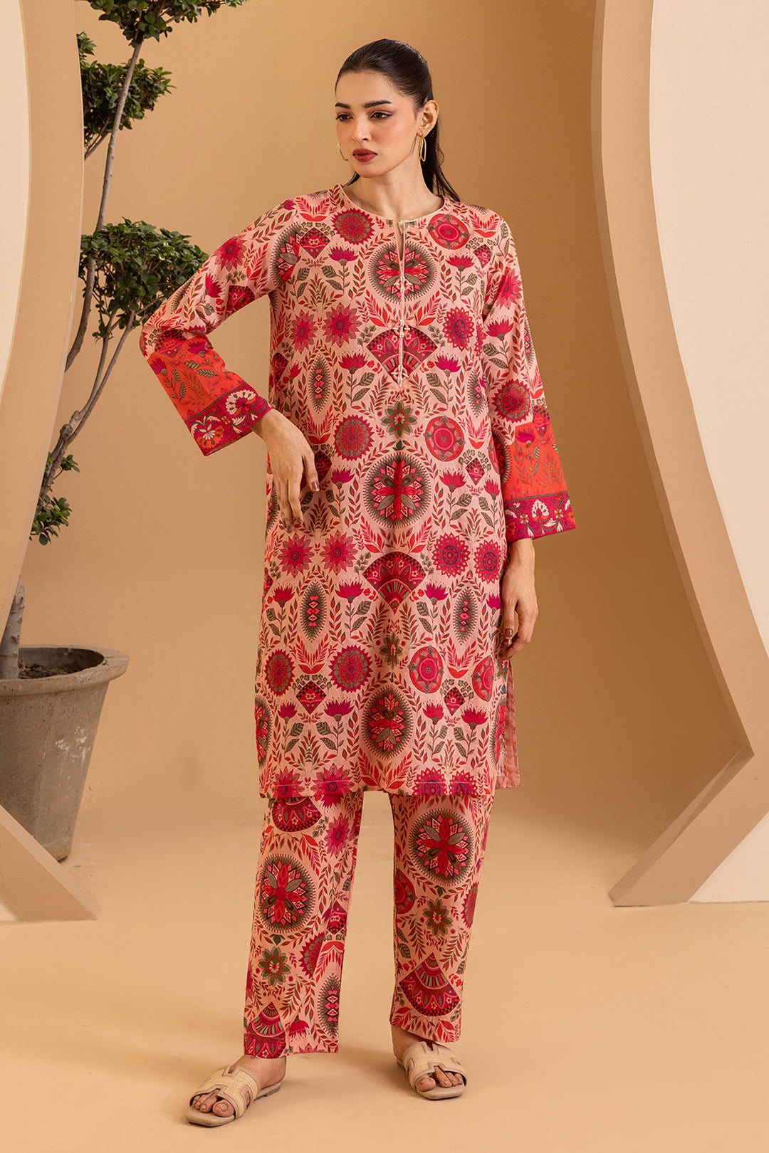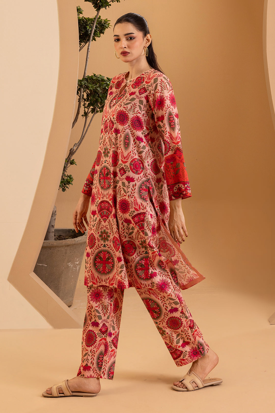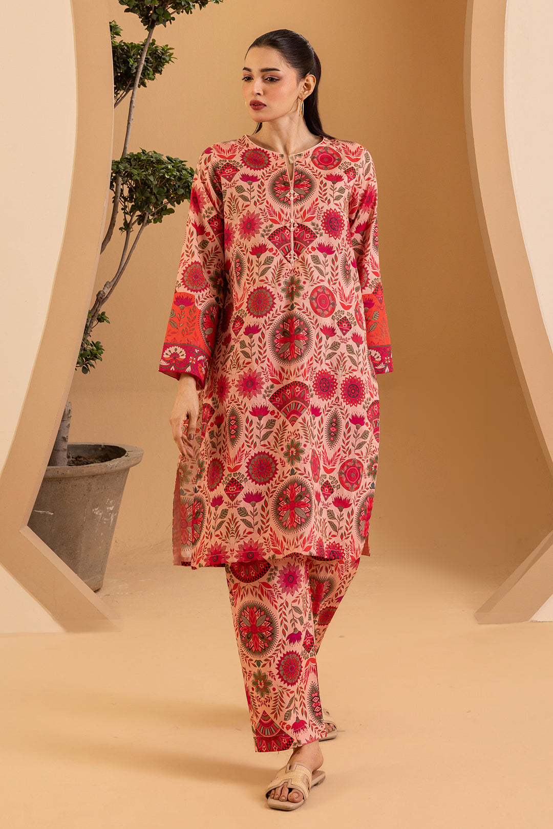 Elevate your everyday wardrobe with this sophisticated printed kurta trouser set, expertly crafted from premium lawn fabric. Designed for the modern woman seeking comfort without compromising on style, this pret piece features an elegant pink palette that transitions seamlessly from casual gatherings to semi-formal occasions. The breathable lawn material ensures all-day comfort in warm climates, while the thoughtfully printed design adds visual interest and versatility. Perfect for pairing with traditional jewelry or contemporary accessories, this kurta trouser combination delivers timeless elegance with contemporary appeal.